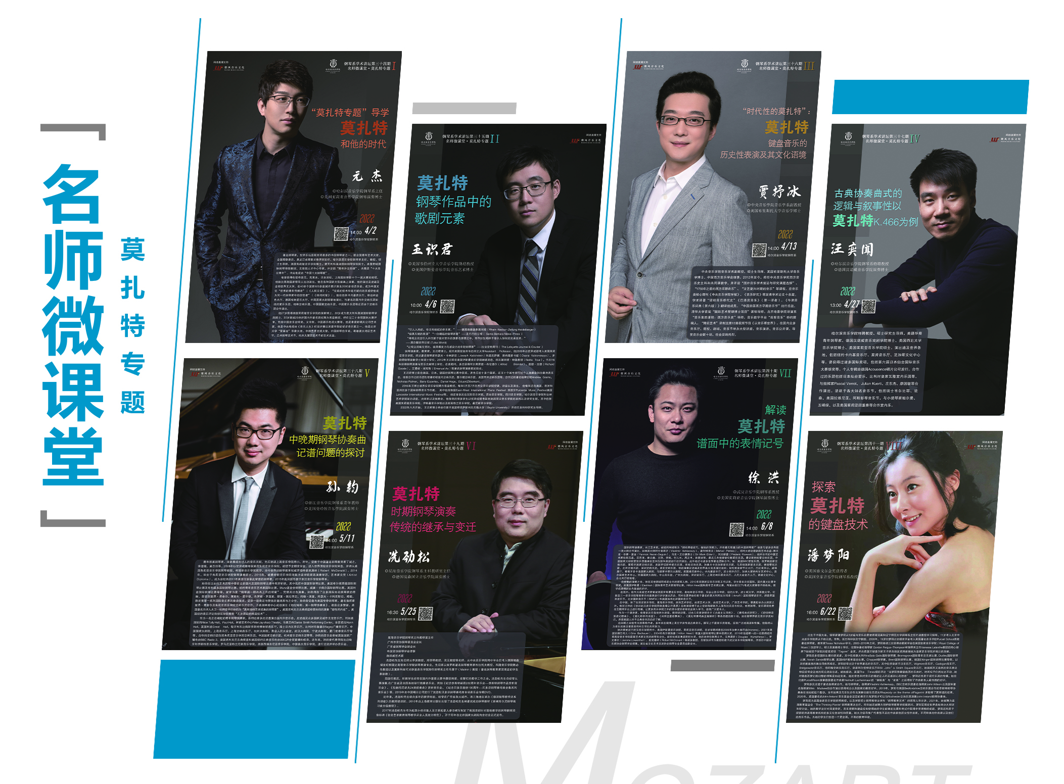 2021-2022学年“名师微课堂”选择聚焦古典时期作曲家莫扎特,邀请英国、美国以及国内各院校的专家,通过八场学术讲座,从音乐历史、风格定位、乐谱研究、舞台演奏等方面进行全方位、多角度的解读:《“莫扎特专题”导学——莫扎特和他的时代》(主讲人:永利23411集团钢琴系主任、美国茱莉亚音乐学院钢琴演奏博士元杰);《莫扎特钢琴作品中的歌剧元素》(主讲人:美国韦伯州立大学音乐学院助理教授、美国伊斯曼音乐学院音乐艺术博士王识君);《时代性的莫扎特——键盘音乐的历史性表演及其文化语境》(主讲人:中央音乐学院音乐学系副教授、硕士生导师贾抒冰);《古典协奏曲的逻辑与叙事性——以莫扎特K.466为例》(主讲人:哈音钢琴系特聘教授、硕士研究生导师汪奕闻);《莫扎特中晚期钢琴协奏曲记谱问题的探讨》(主讲人:浙江音乐学院钢琴系青年教师、美国曼哈顿音乐学院演奏博士孙钧);《莫扎特时期钢琴演奏传统的继承与变迁》(主讲人:星海音乐学院钢琴系主科教研室主任、德国埃森国立音乐学院演奏博士冼劲松);《解读莫扎特谱面中的表情记号》(主讲人:武汉音乐学院钢琴系教授、美国茱莉亚音乐学院钢琴演奏博士徐洪);《探索莫扎特的键盘艺术》(主讲人:英国泰戈尔金奖获得者、英国皇家音乐学院钢琴系教授潘梦阳)。
