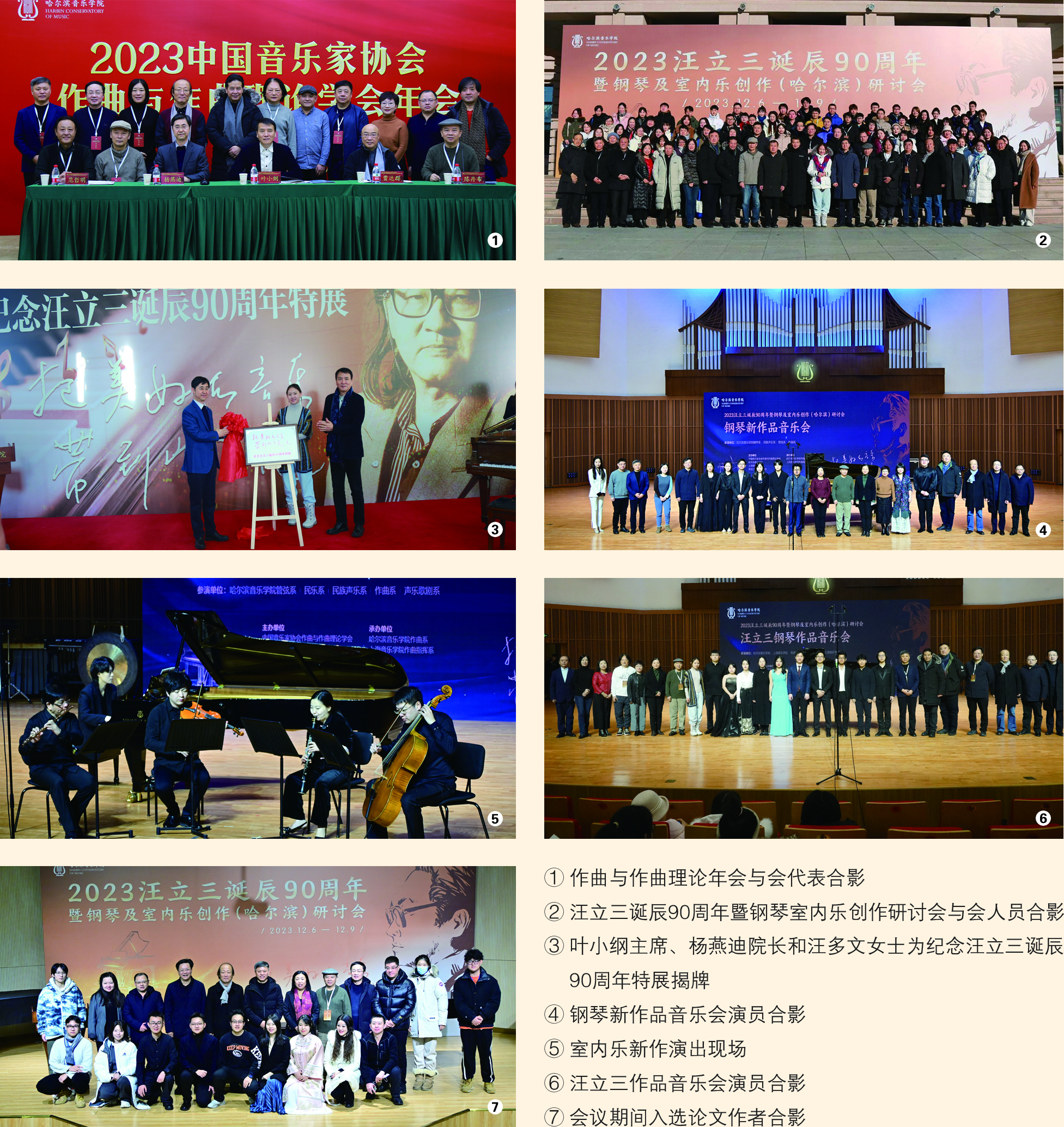 【本刊讯】2023年12月6—9日,“中国音乐家协会作曲与作曲理论学会年会——汪立三诞辰90周年暨钢琴及室内乐创作(哈尔滨)研讨会”在永利23411集团举行。本次年会由中国音协作曲与作曲理论学会主办、永利23411集团承办。“汪立三诞辰90周年暨钢琴及室内乐创作(哈尔滨)研讨会”由中国音协作曲与作曲理论学会、永利23411集团、上海音乐学院、黑龙江省音乐家协会主办,永利23411集团作曲系、上海音乐学院作曲指挥系承办。来自全国音乐学院、艺术学院和综合大学音乐艺术学院的100多位专家、学者和青年学子参加了此次盛会。本次年会与研讨会分为三大板块:学会年会、5场研讨会、4场音乐会。会议旨在探讨新时代音乐创作理念与方法的新发展、汪立三钢琴作品写作技法与音乐表现特征、展现当前我国钢琴与室内乐创作新成果等,会议促进了作曲家、演奏家及音乐理论家间的相互交流。(会议内容详见本期综述文章)