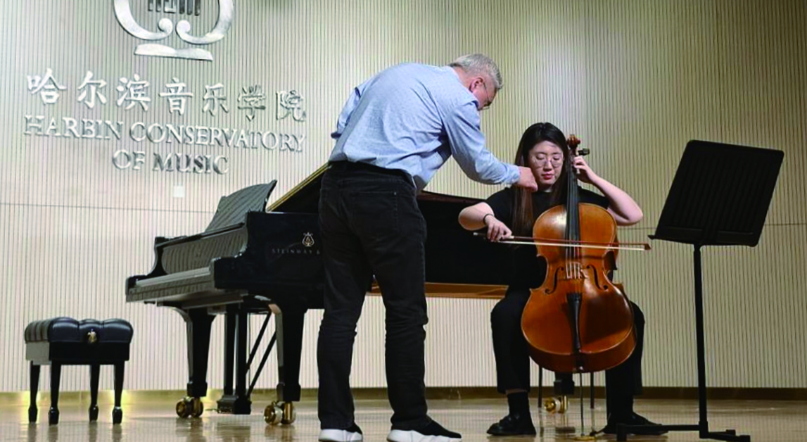 【本刊讯】2024年5月14日,世界著名大提琴家王健精彩的大师课在我院举行。大师课上,王健对学生们进行细致耐心的指导。他阐述影响大提琴发音的三个维度,对大提琴的换弓、换弦方式,左右手的配合,以及重点乐句的处理,进行了细致的讲解。管弦系三位学生分别演奏德沃夏克《b小调大提琴协奏曲》(第二乐章)、海顿《C大调大提琴协奏曲》(第二乐章)与巴赫《大提琴无伴奏组曲(第三组曲)》前奏曲等,王健指出他们演奏出现的问题,尤其强调乐句与节奏的重要性,建议同学充分了解曲子中各个音符时值,严格把握整首曲子的节奏。