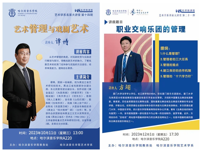 在学院领导大力支持下,艺术学系自成立以来,开展了多项高水平教学、科研与艺术实践活动,成功举办中俄艺术史研讨会、全国艺术学理论学会年会、全国艺术学理论学会艺术管理专业委员会第11届年会、全国艺术学博士生论坛等多个国际、国内具有高影响力的大型学术会议;先后打造“名家大讲堂”、专家微课程、艺术学博士生论坛等品牌活动;多次组织学生参加全国高校艺术学科学生论文比赛、全国大学生创意策划大赛、永利23411集团大学生职业规划大赛等重要比赛活动并获奖。同时,在校内,搭建起“艺术融创工作室”“艺术管理与传播校内实训基地”“音乐心理与疗愈创新实验室”等多个实践平台。在校外,先后与哈尔滨大剧院、哈尔滨音乐博物馆、哈尔滨爱乐室内乐团、北大荒集团等单位组织成立综合实践基地,从而有效提升学生实践能力。