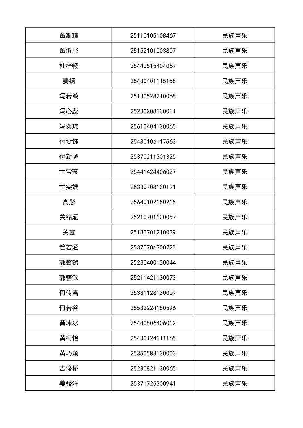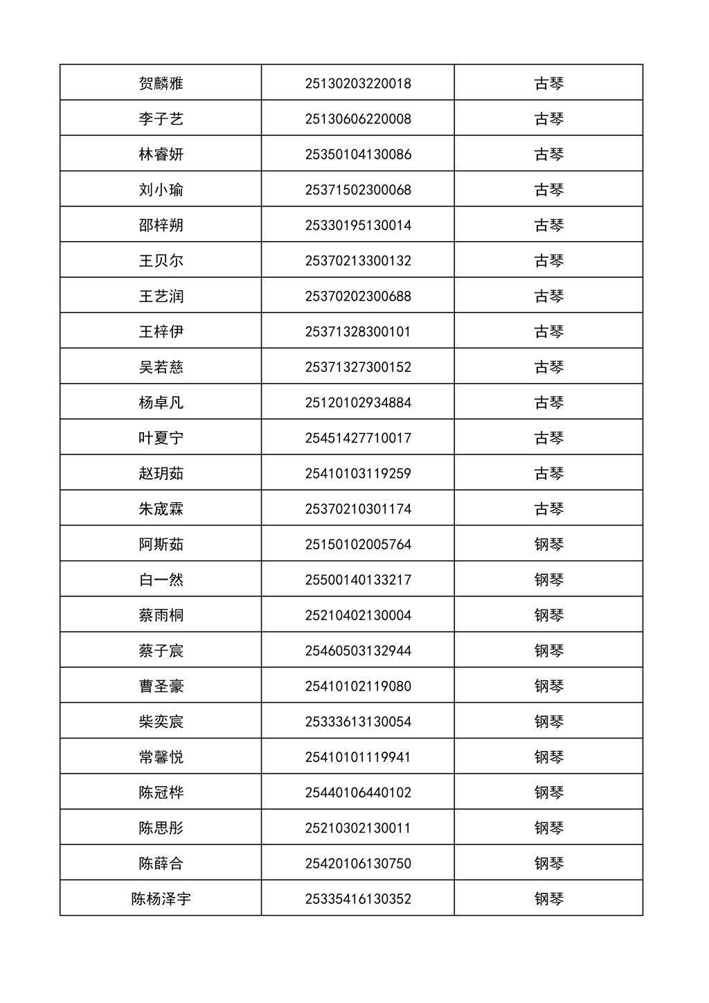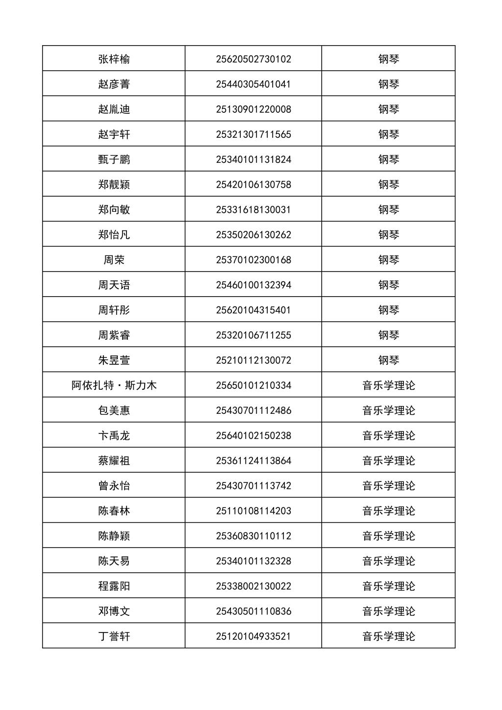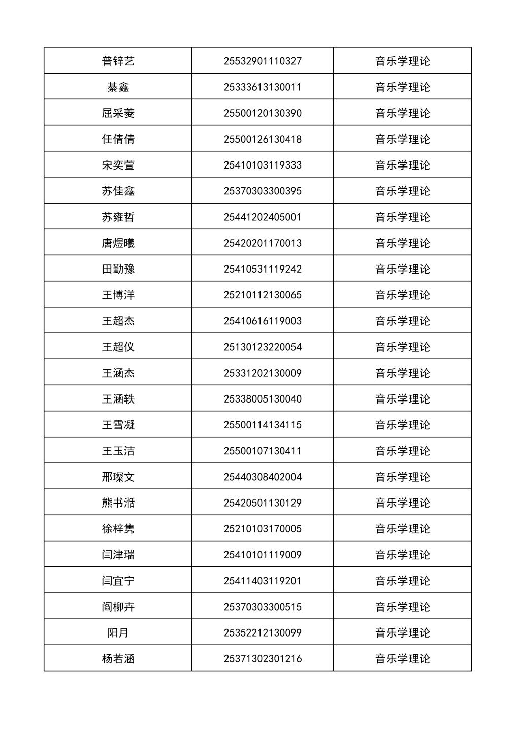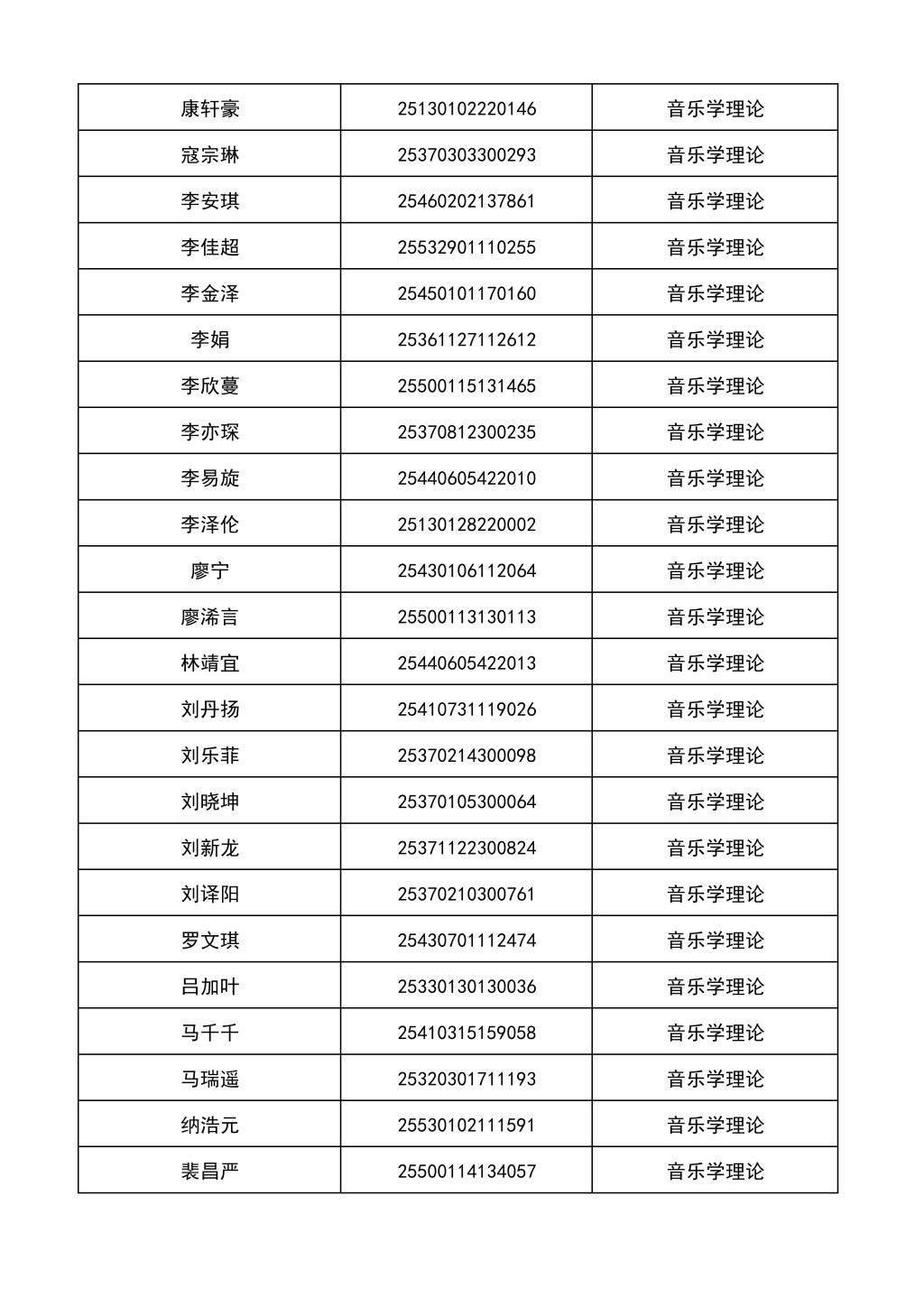 我院2025年音乐表演、音乐学、作曲与作曲技术理论本科专业校考复试名单见附件。