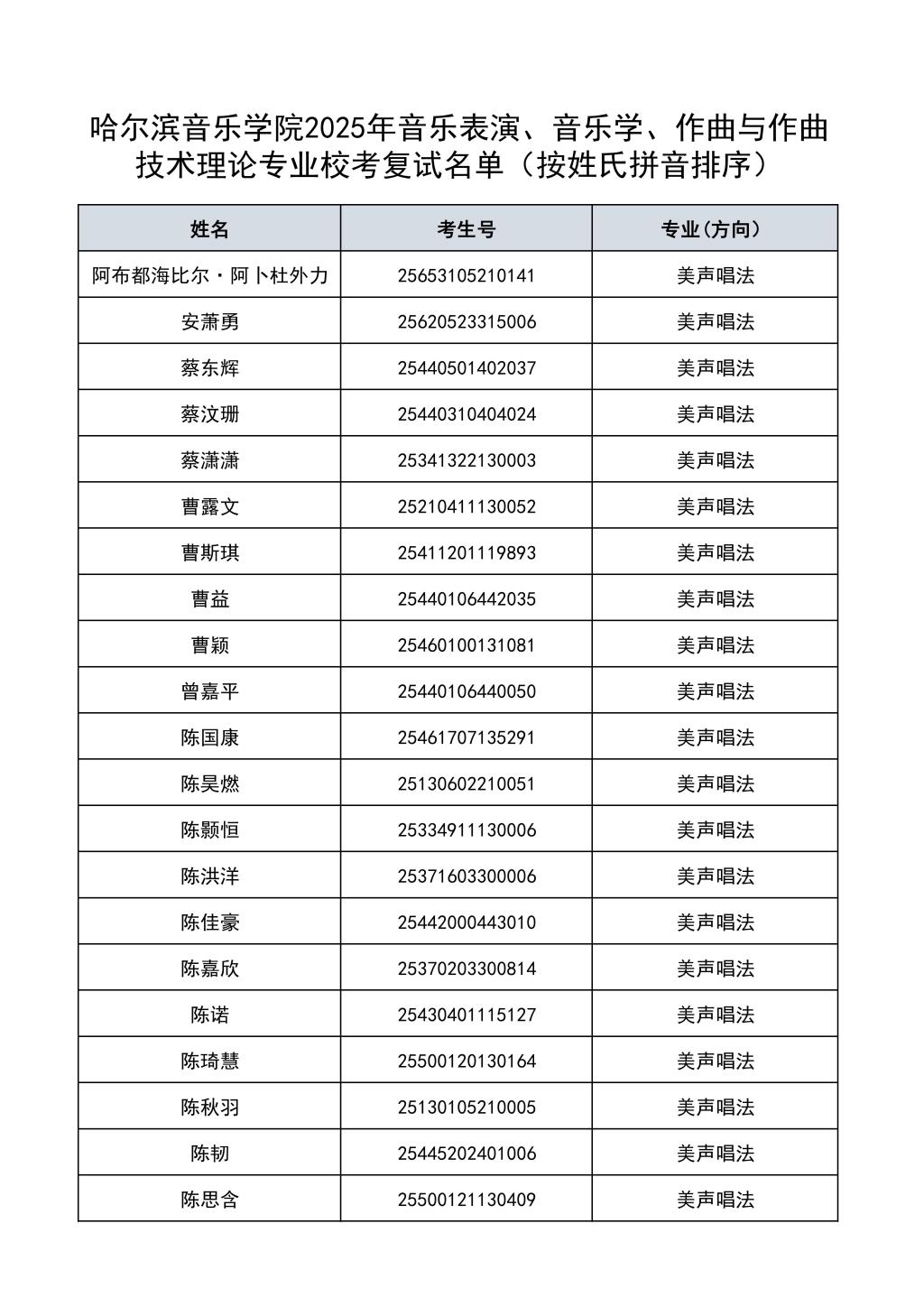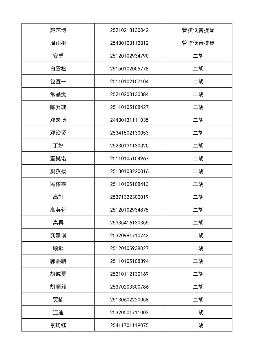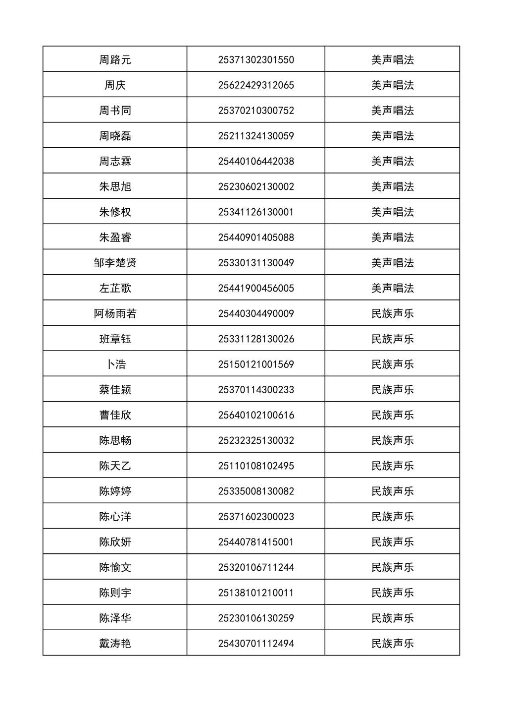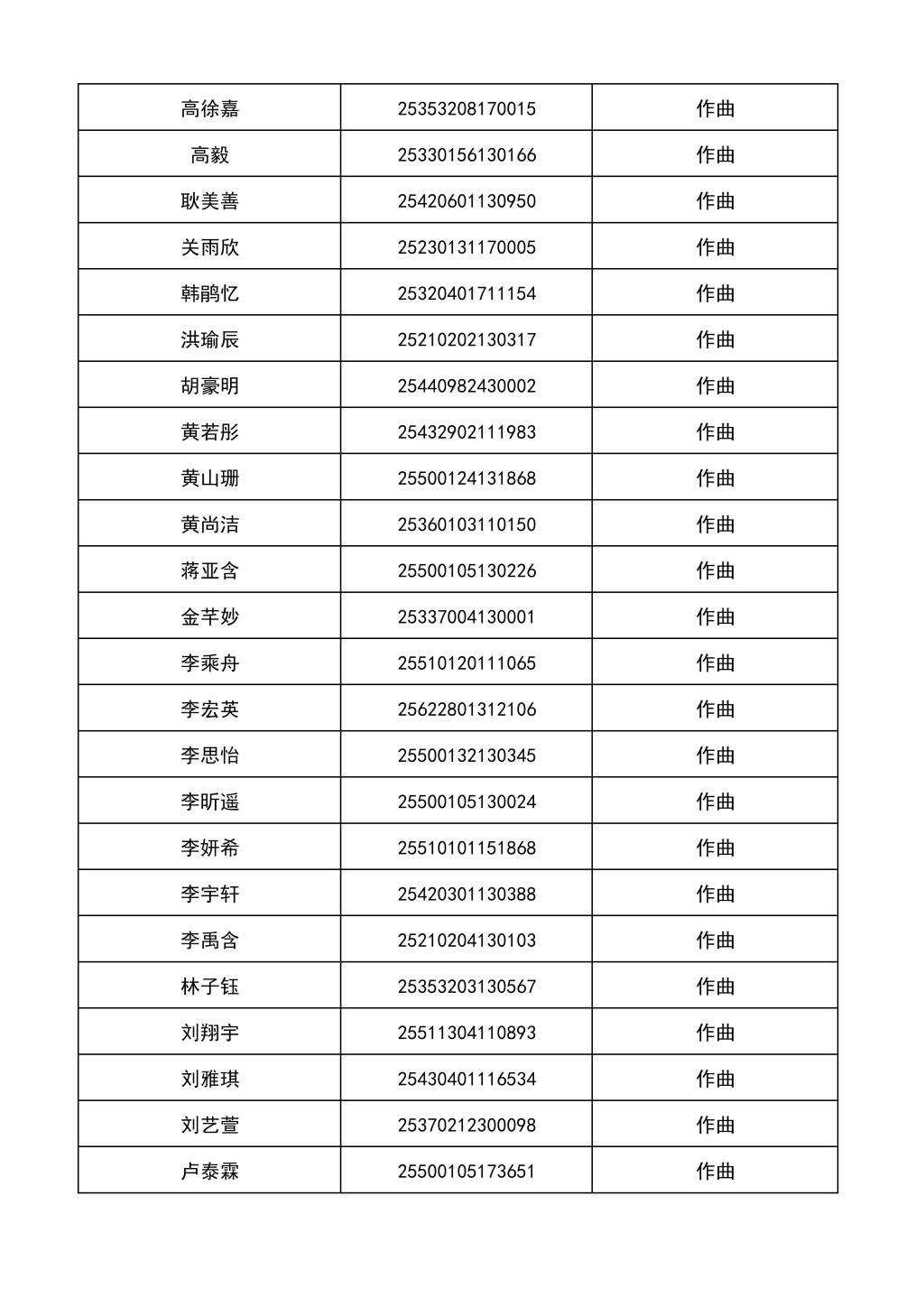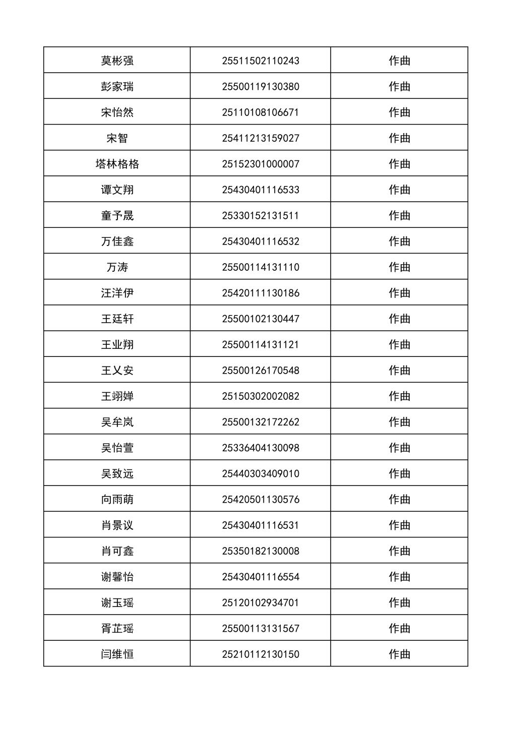 我院2025年音乐表演、音乐学、作曲与作曲技术理论本科专业校考复试名单见附件。