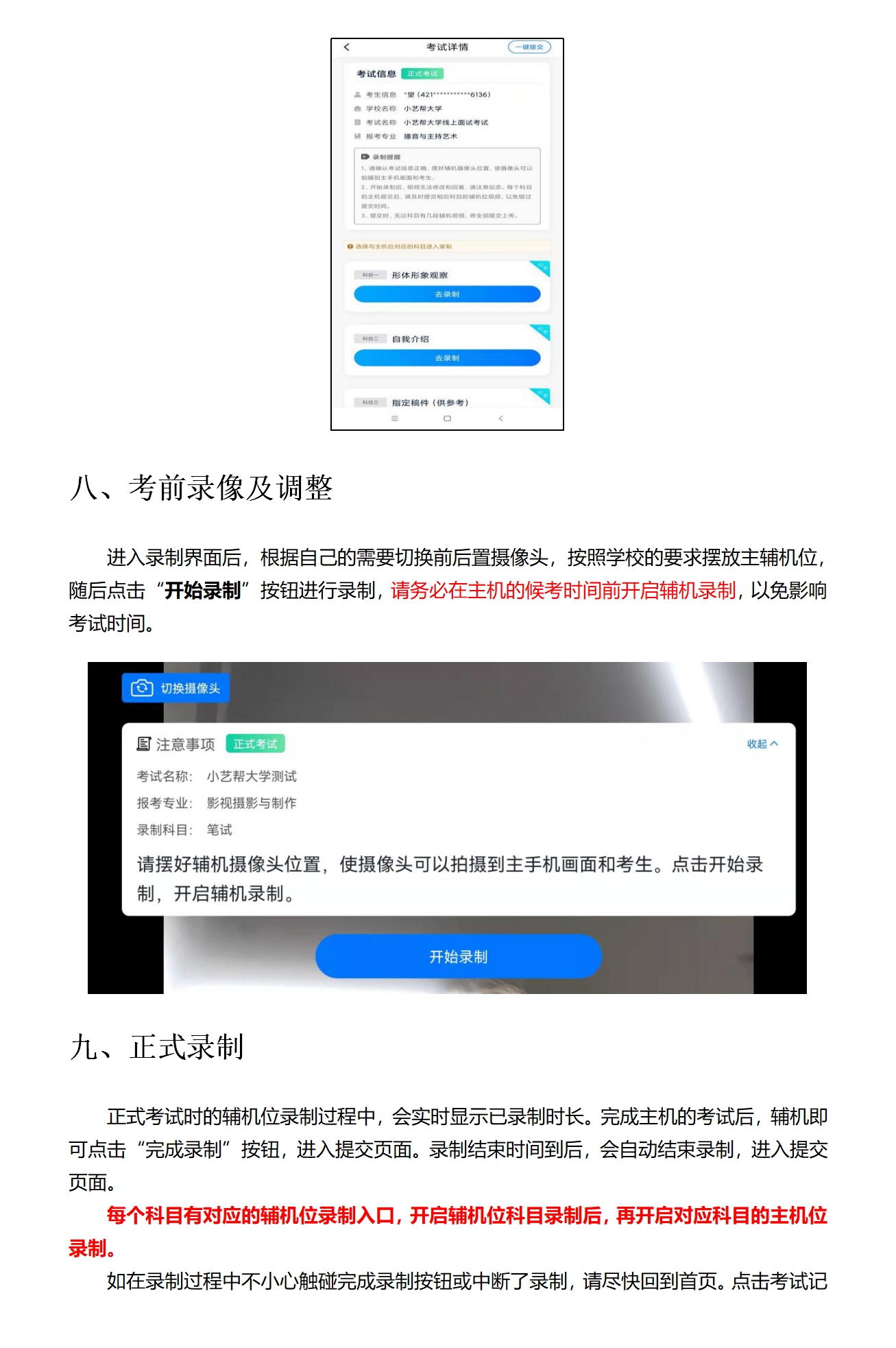 12.主机、辅机均必须全程录像,考生必须保证正常拍摄录制考试全过程(同期、同声),不得遮挡摄像头。
