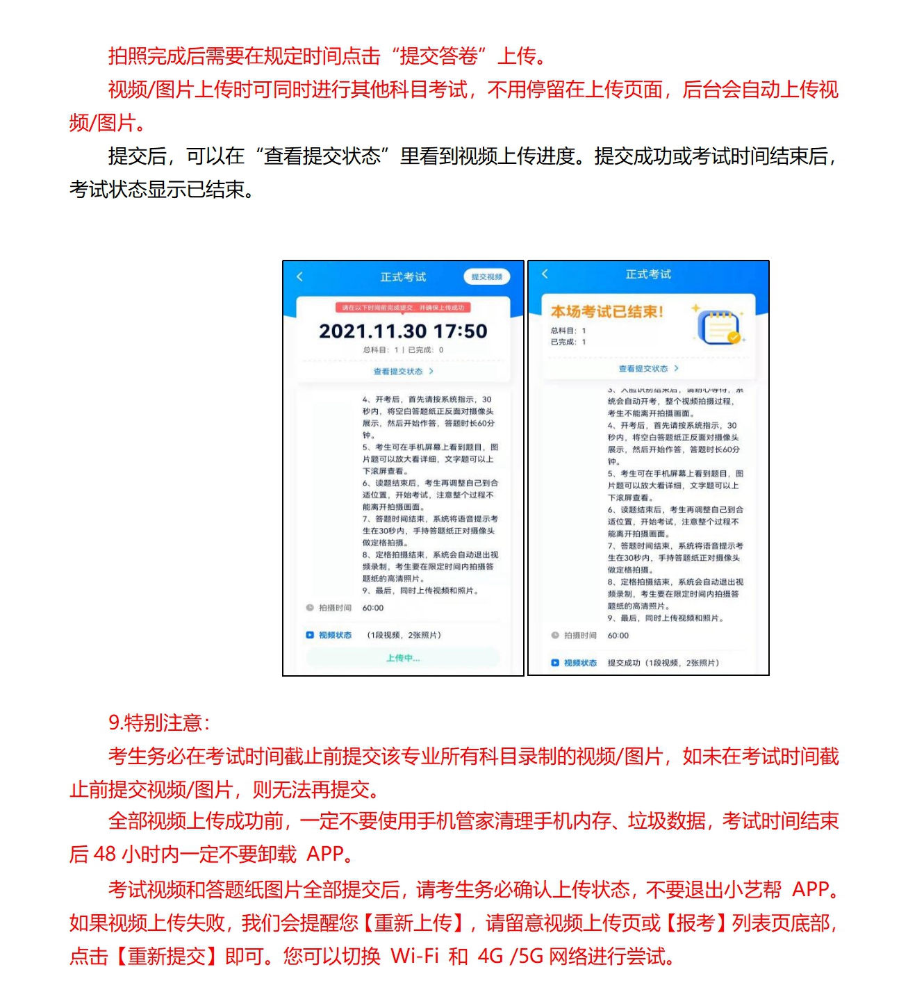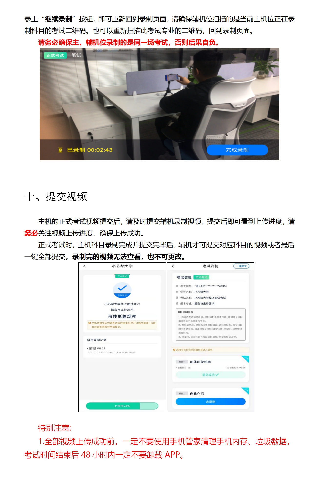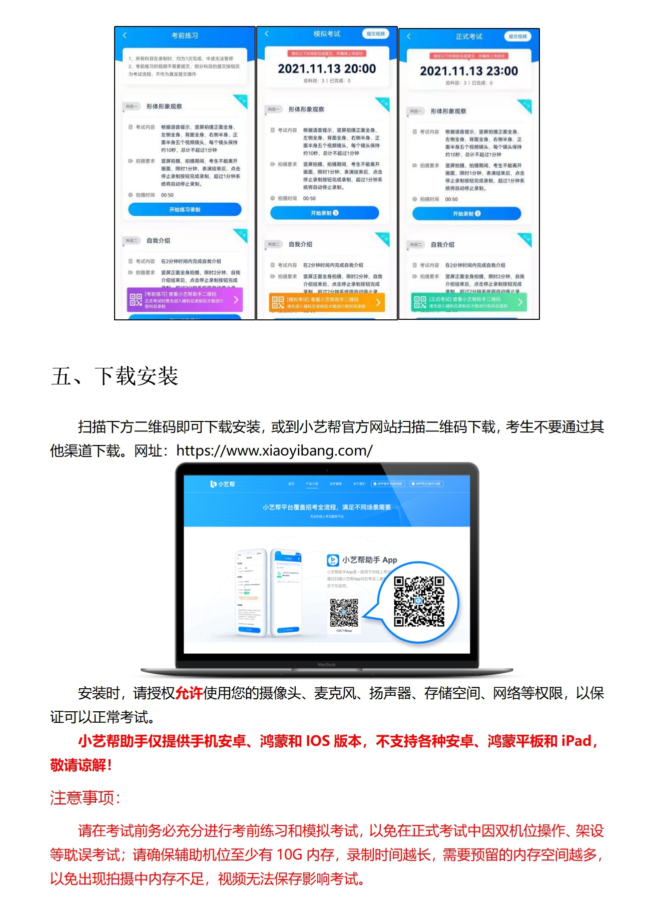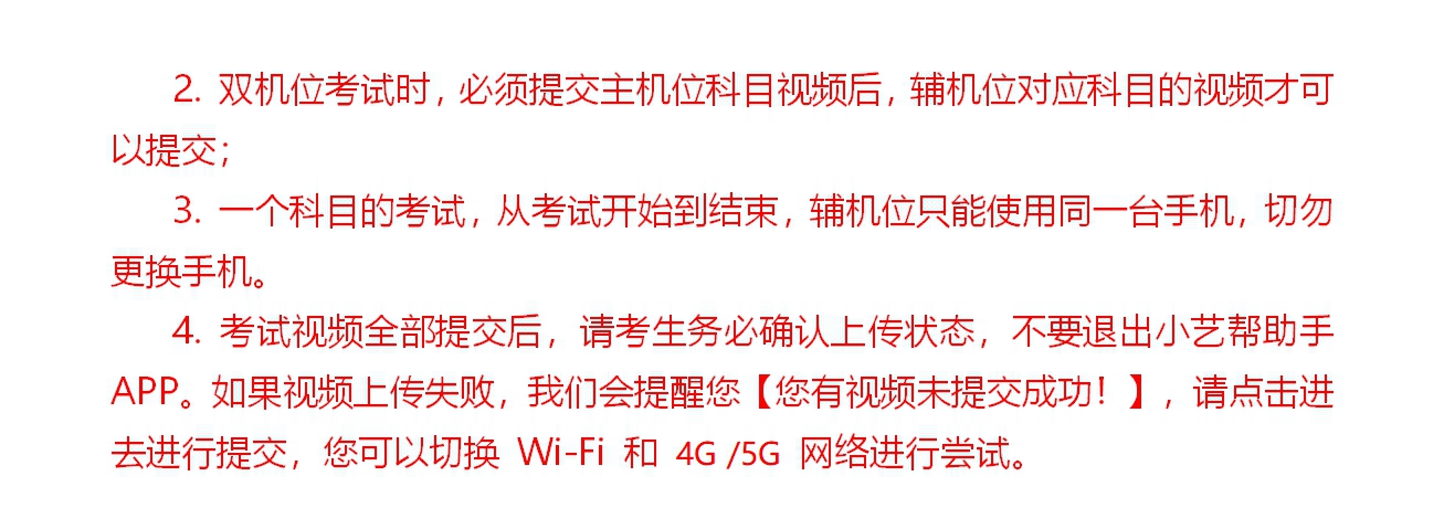 13.全部视频上传成功前,一定不要使用手机管家清理手机内存、垃圾数据,考试时间结束后48小时内一定不要卸载小艺帮APP及小艺帮助手APP。