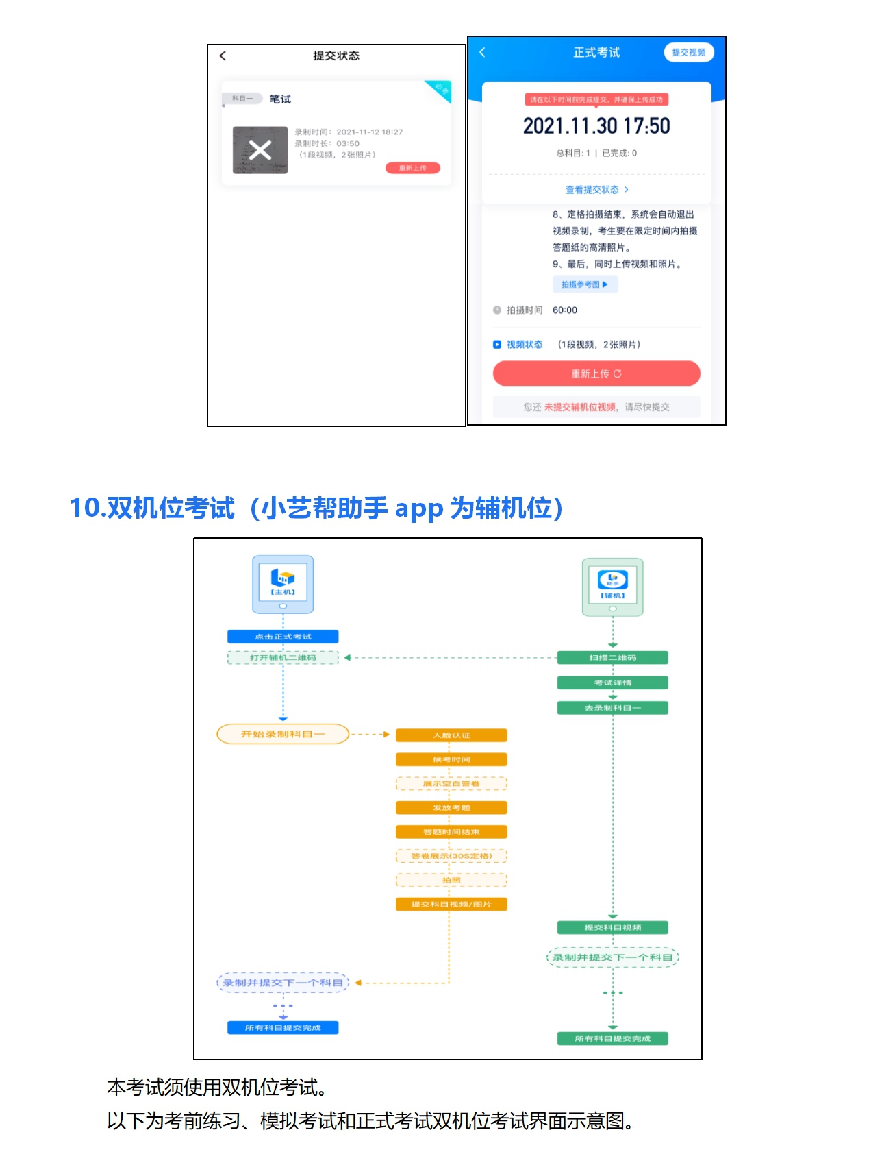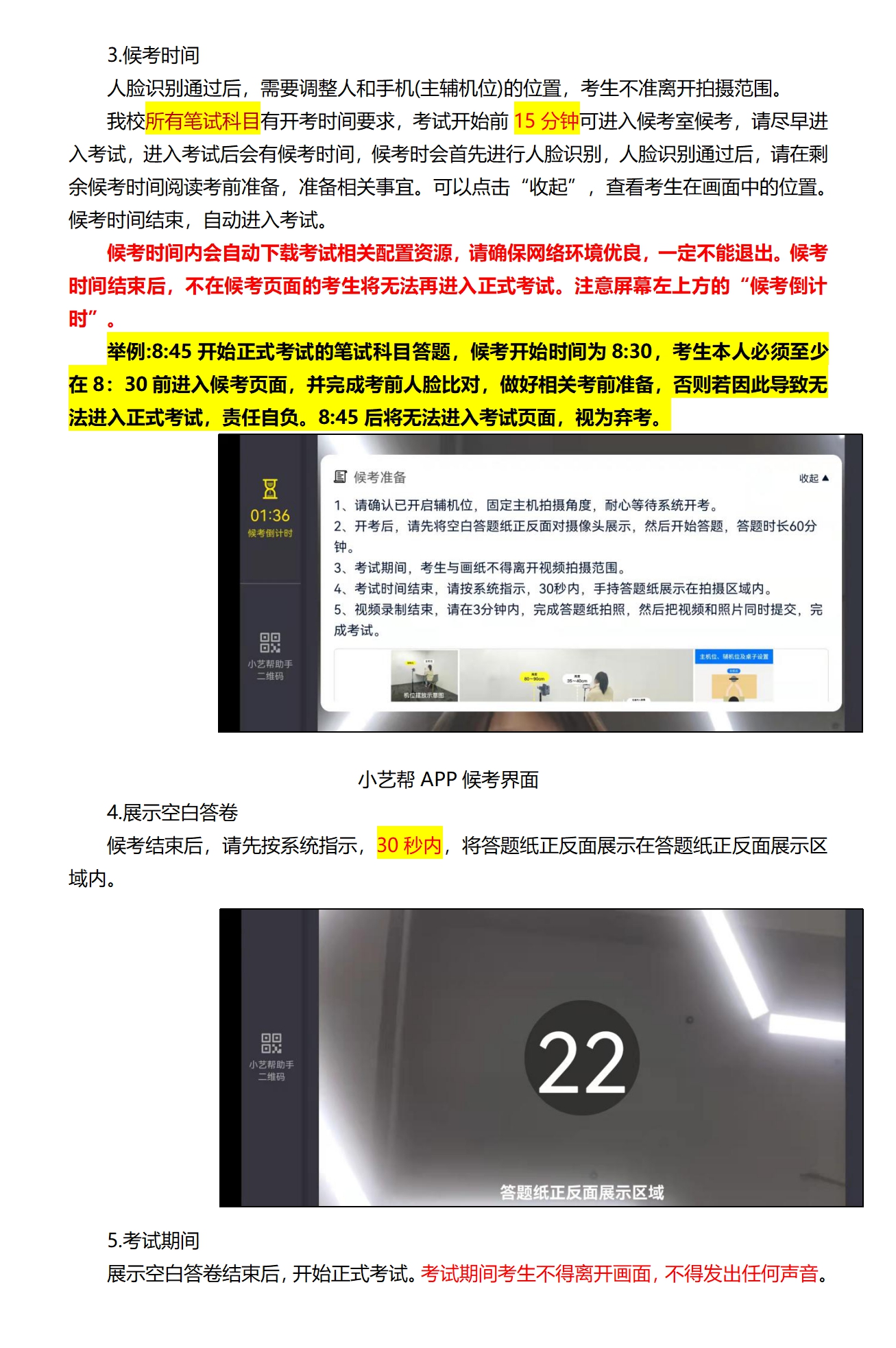 1.考生须考前提前15分钟进入小艺帮APP正式考试页面候考,按照监考教师要求调整主机和辅机位置,正式考试开始后未能进入的考生,视为自动放弃该科目考试。