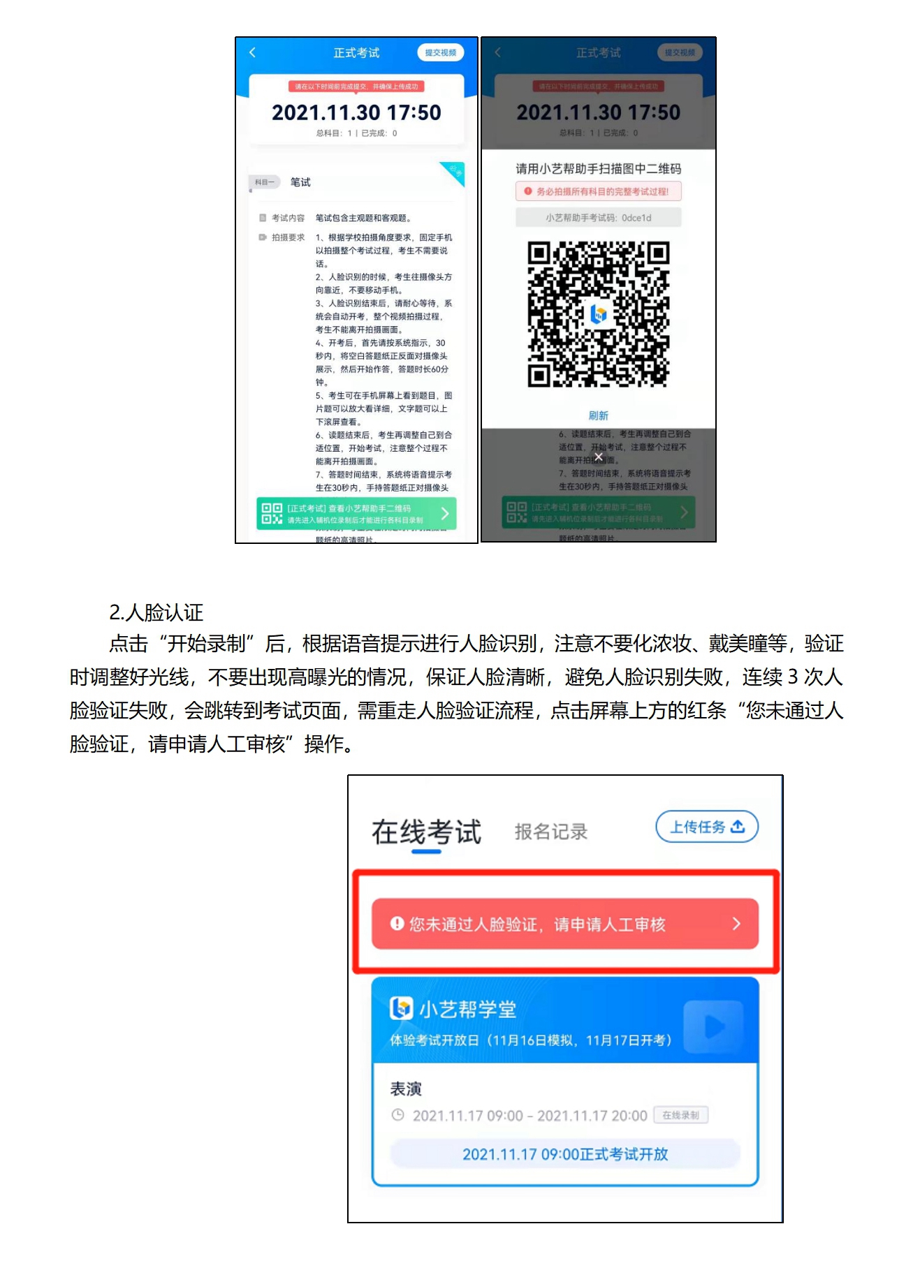 15.除本通知要求的线上笔试科目外,因疫情防控原因(健康码为红色、黄色、大数据行程卡带星号)无法参加专业课科目的现场面试的考生,经向我院报备批准后,可于2月18日在小艺帮APP“报考”页面确认考试,2月19日参加考前练习和模拟考试,2月20日08:00-21日24:00线上考试,提交专业课科目的视频,逾期按放弃考试处理。