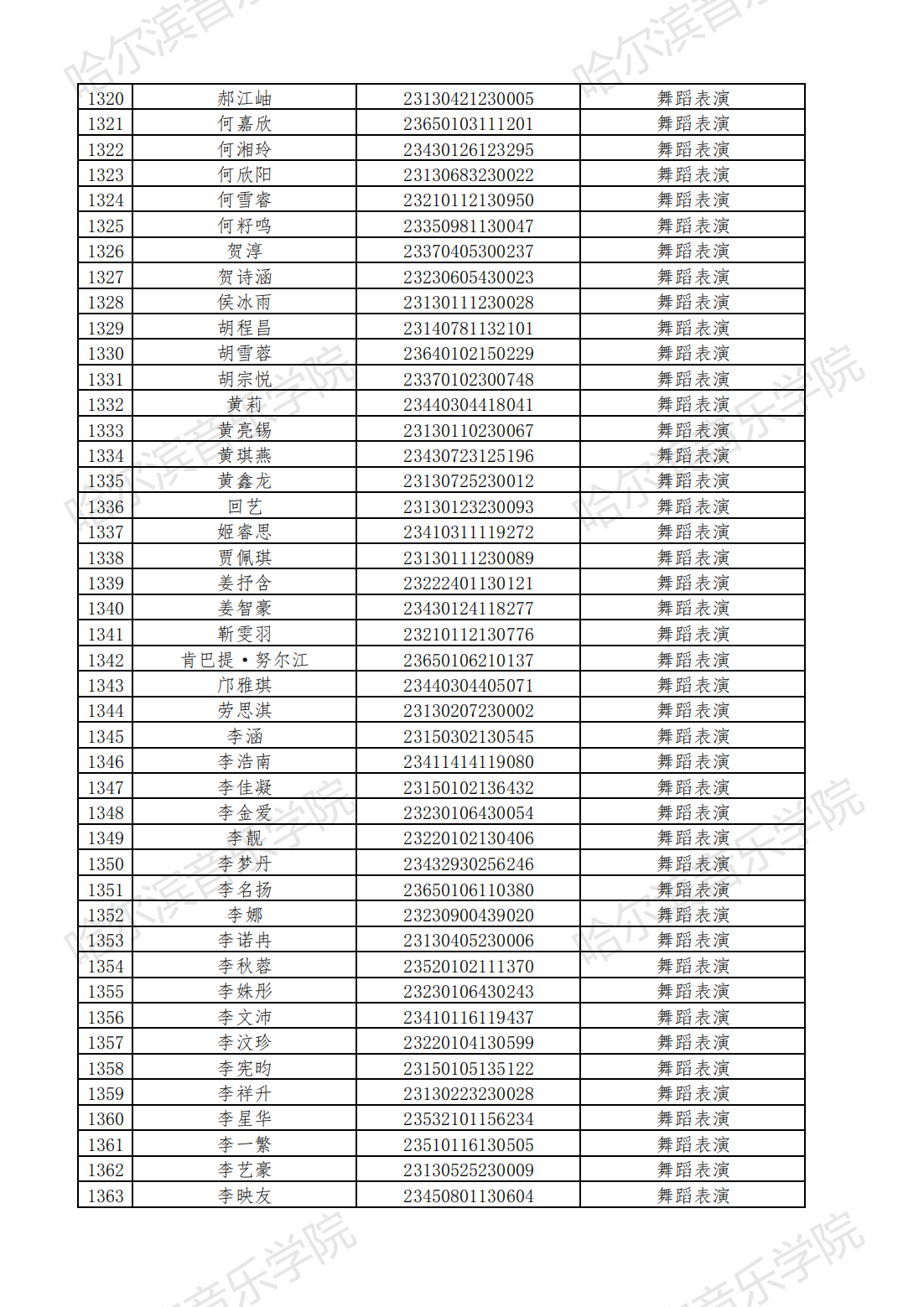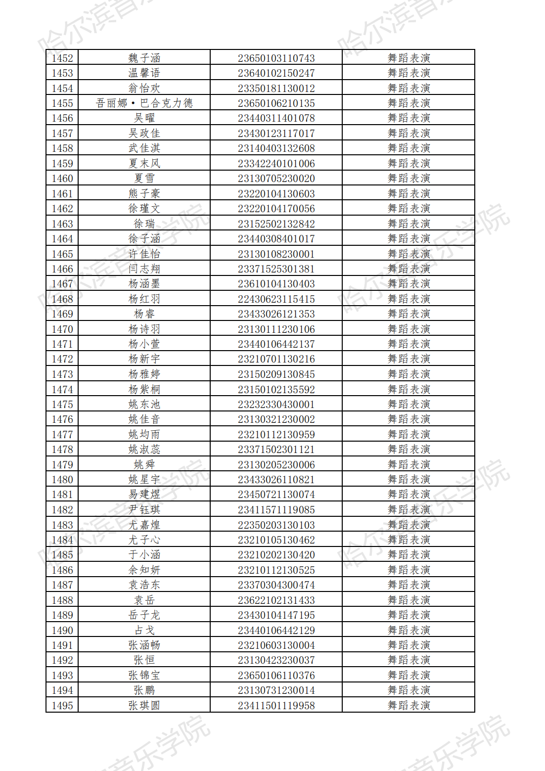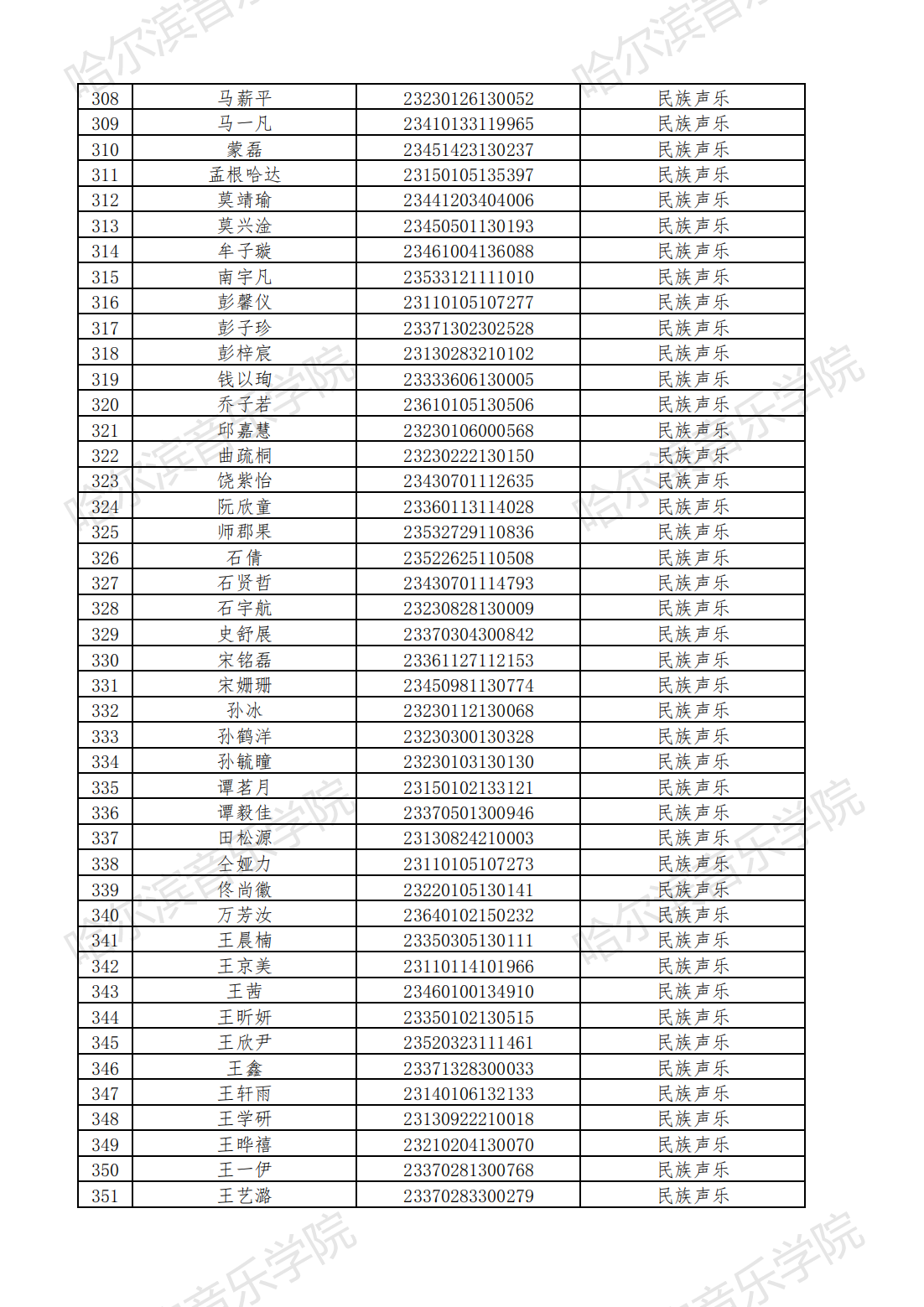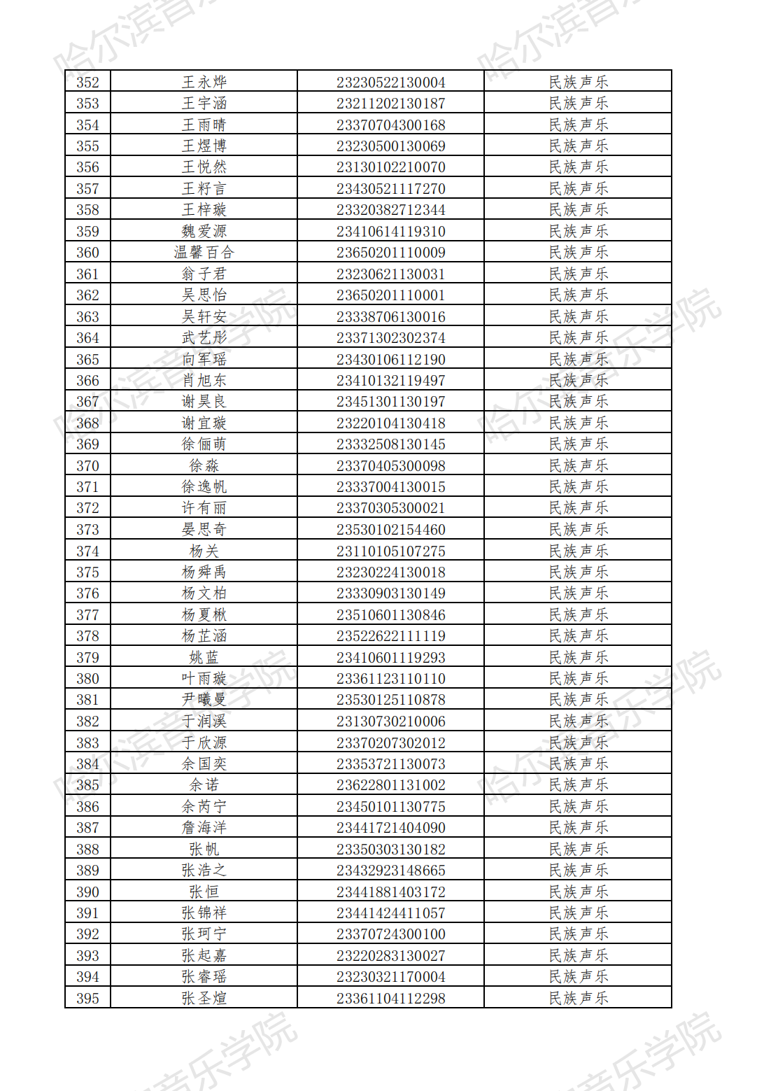 附件:永利23411集团2023年音乐表演、音乐学、作曲与作曲技术理论、舞蹈表演本科专业校考复试名单(按姓氏拼音排序)