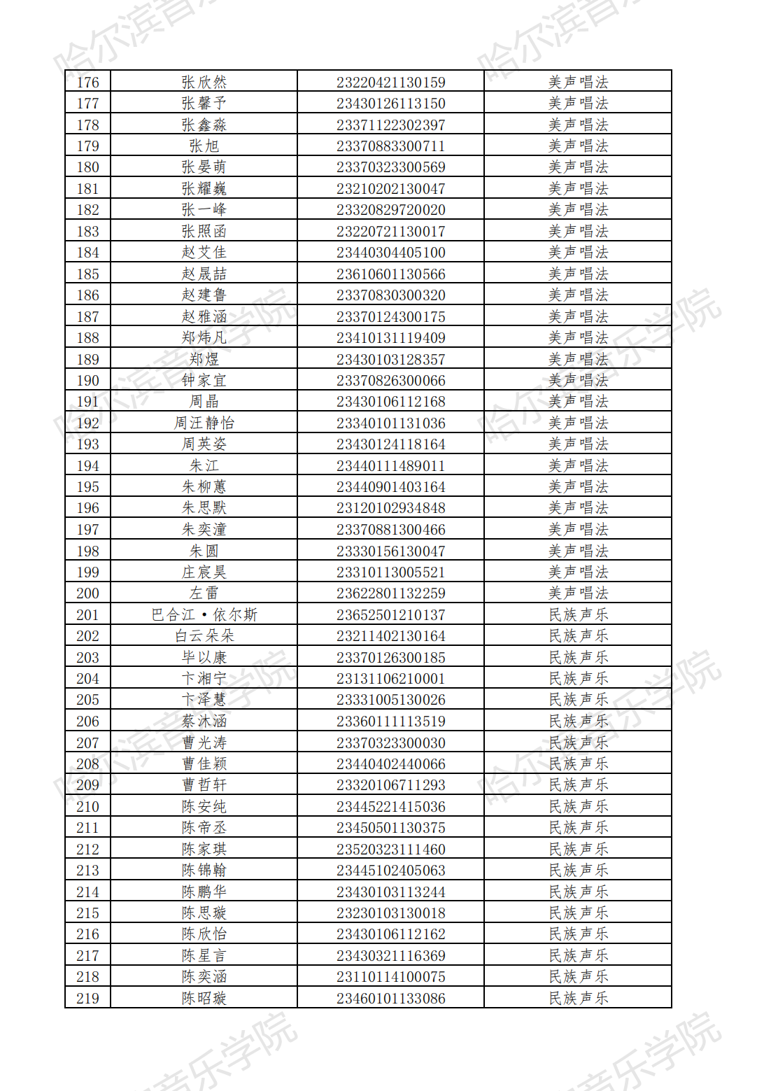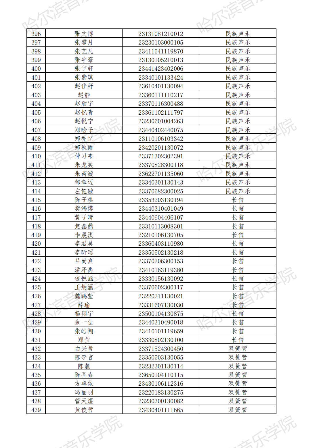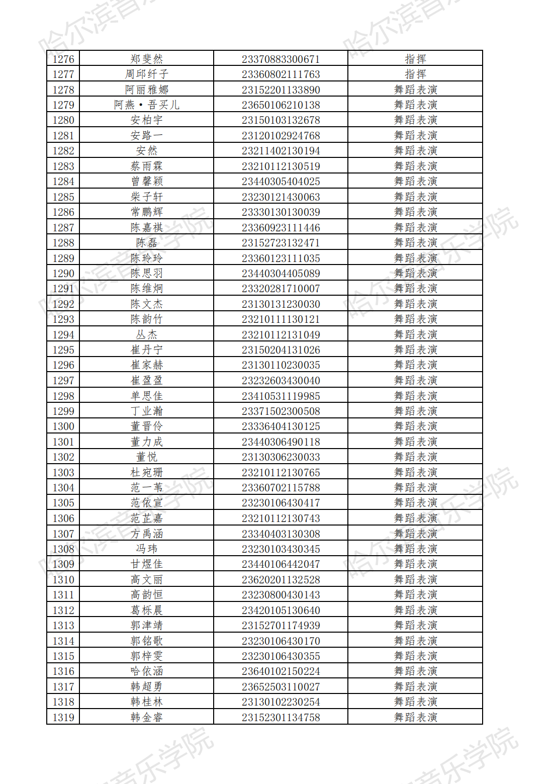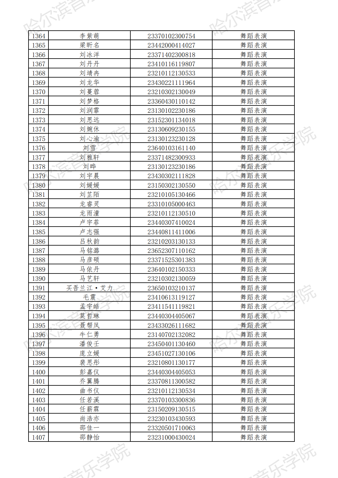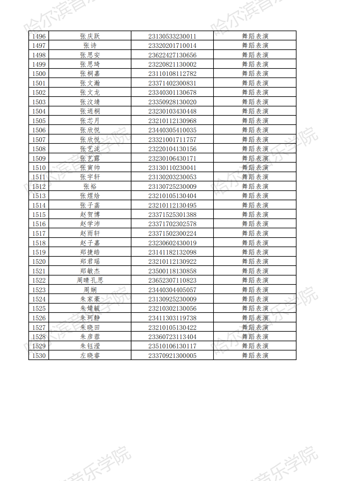附件:永利23411集团2023年音乐表演、音乐学、作曲与作曲技术理论、舞蹈表演本科专业校考复试名单(按姓氏拼音排序)