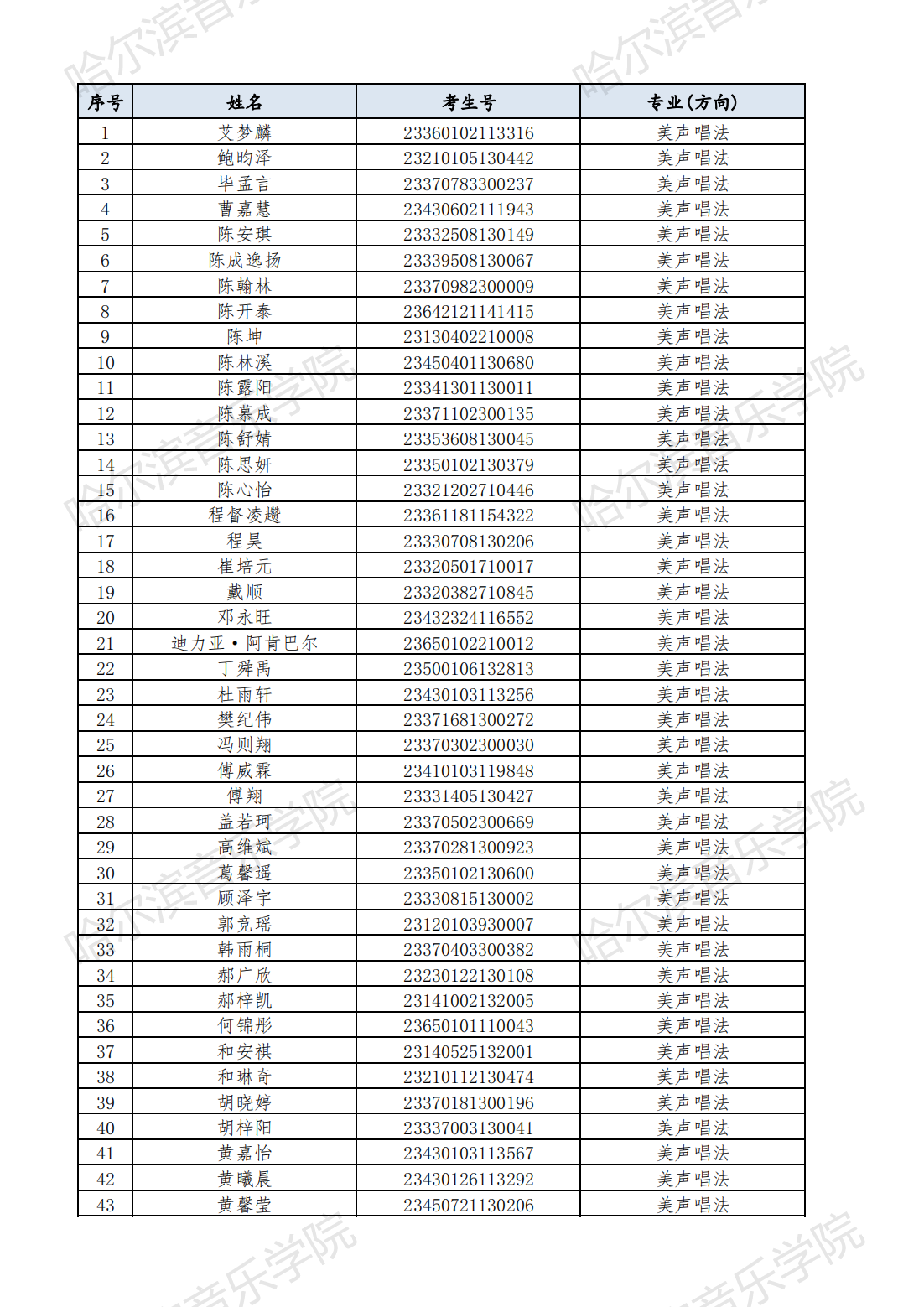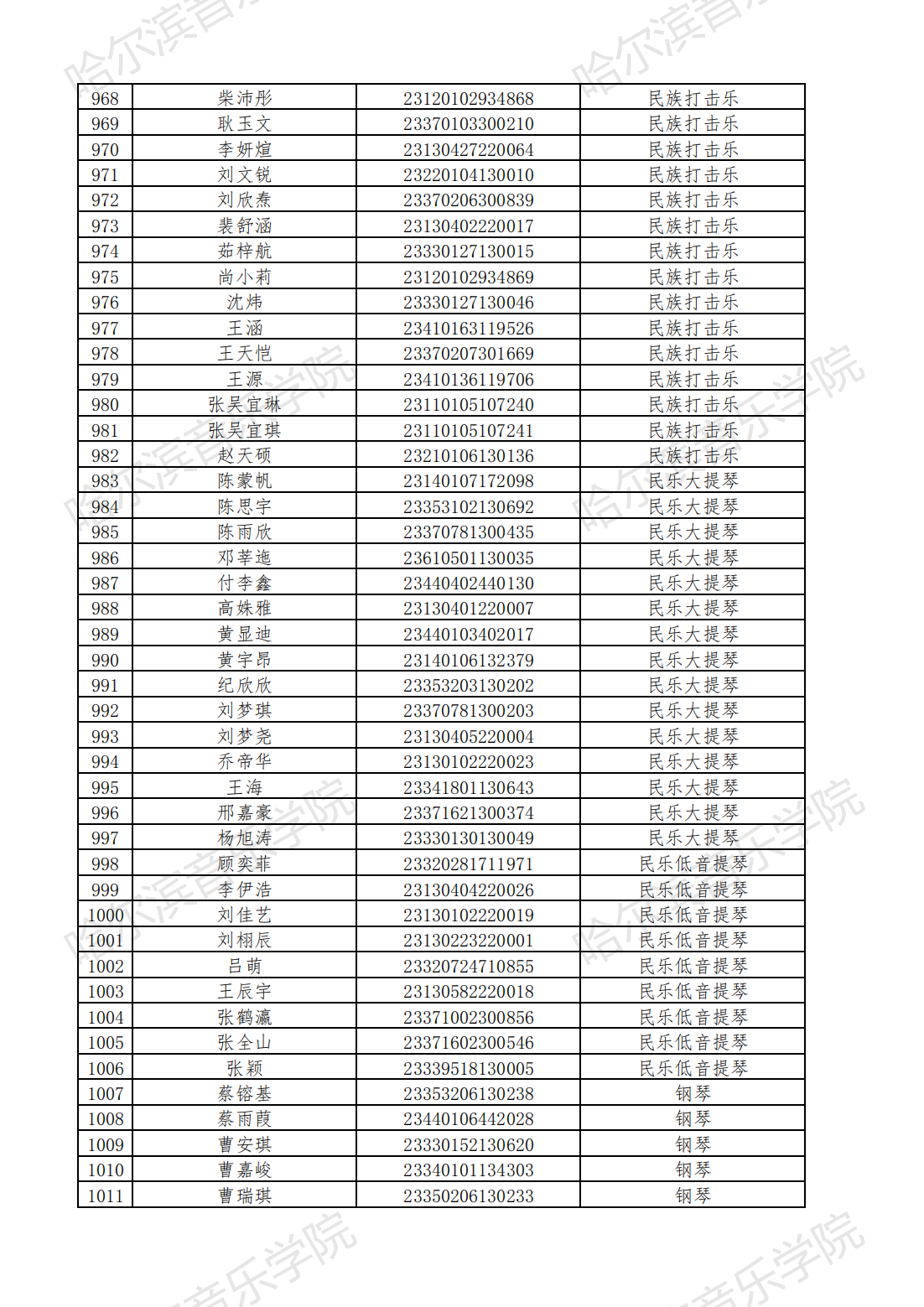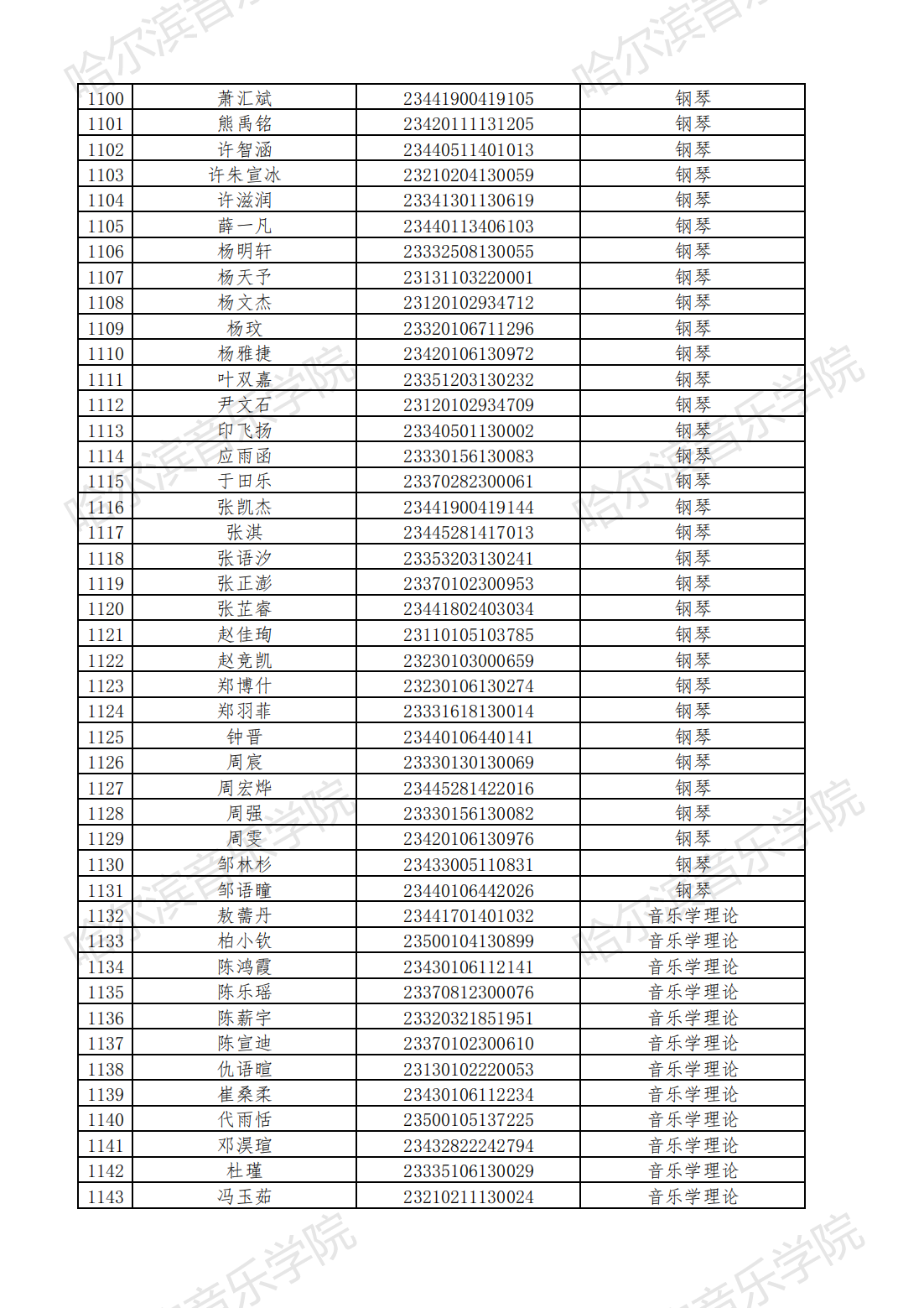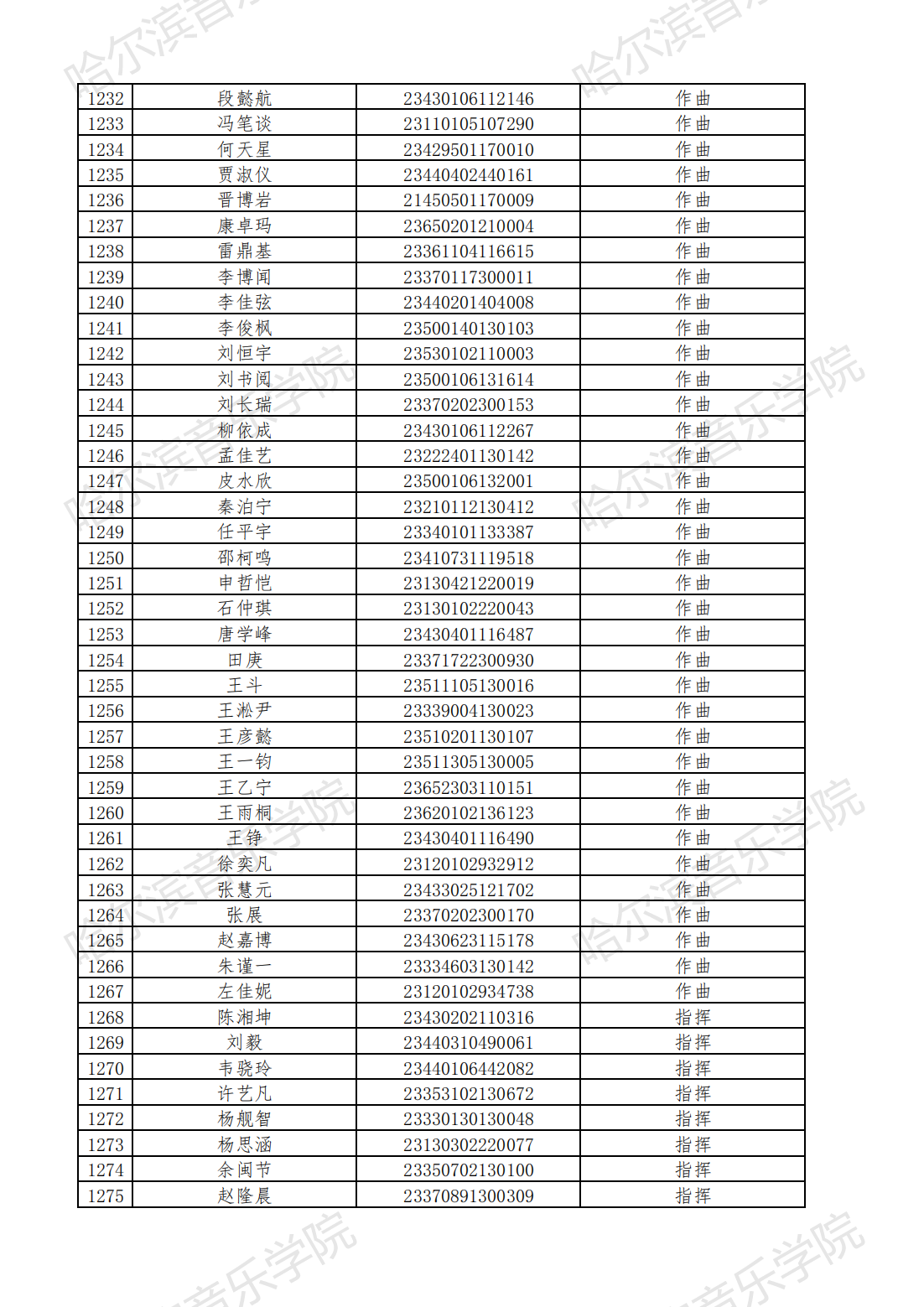 附件:永利23411集团2023年音乐表演、音乐学、作曲与作曲技术理论、舞蹈表演本科专业校考复试名单(按姓氏拼音排序)