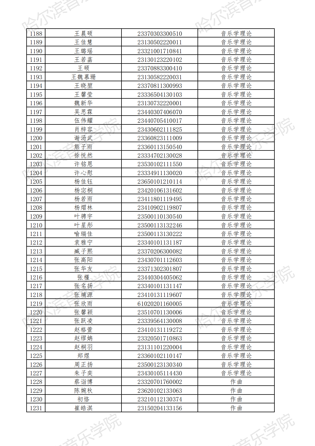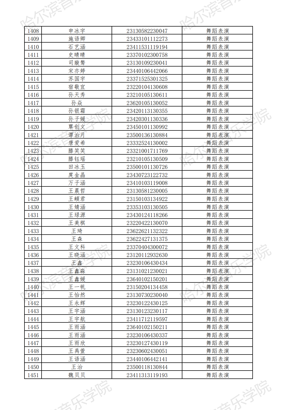 我院2023年音乐表演、音乐学、作曲与作曲技术理论、舞蹈表演本科专业校考复试名单见附件。艺术管理专业合格名单将于2023年4月10日以后公布。