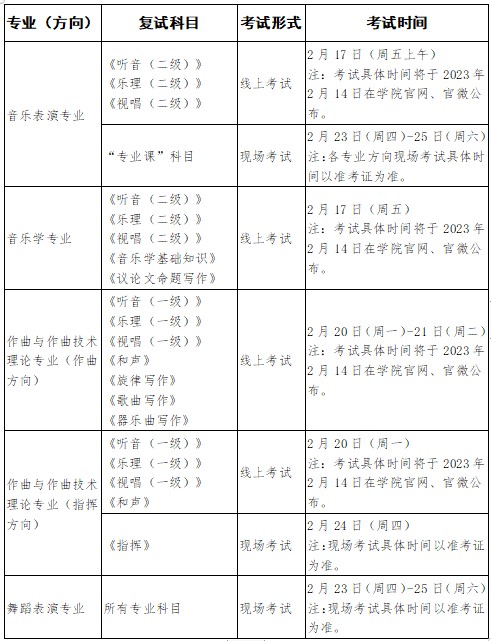 2.作曲与作曲技术理论专业作曲方向复试所有科目、作曲与作曲技术理论专业指挥方向除《指挥》科目现场复试外,线上笔试为2月20日(周一)-21日(周二)。