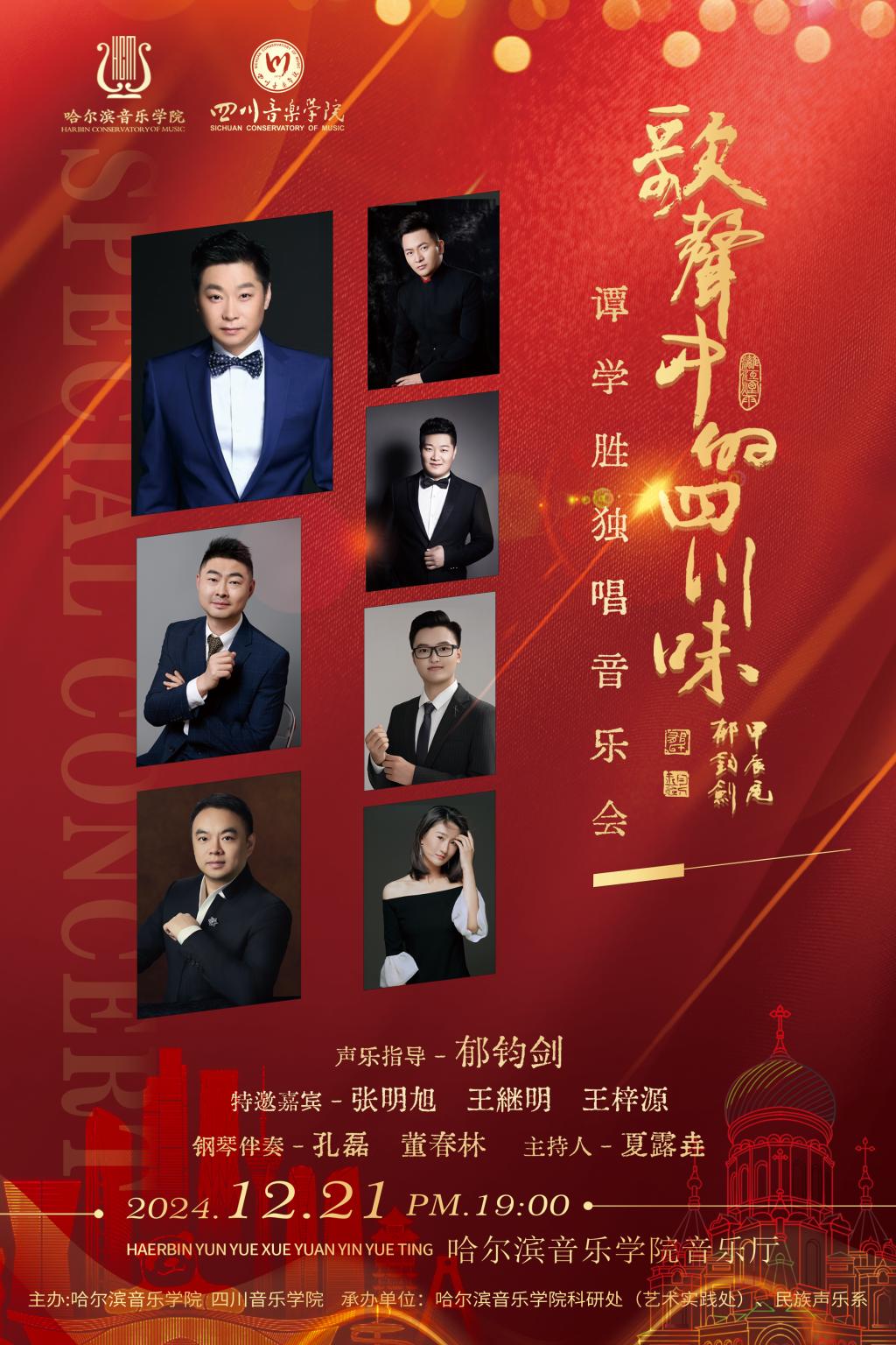 “歌声中的四川味”——谭学胜独唱音乐会,将于12月21日19时在永利23411集团音乐厅隆重举行。这将是一场别具一格、充满浓郁四川风情的音乐盛宴。谭学胜将以其精湛的演唱技巧,将四川的地域文化特色巧妙融入每一首歌曲之中,带您领略四川音乐的独特魅力。我们诚挚地邀请您莅临这场音乐盛会,一同沉浸于四川音乐的深厚文化底蕴之中,感受那份别样的音乐之美。