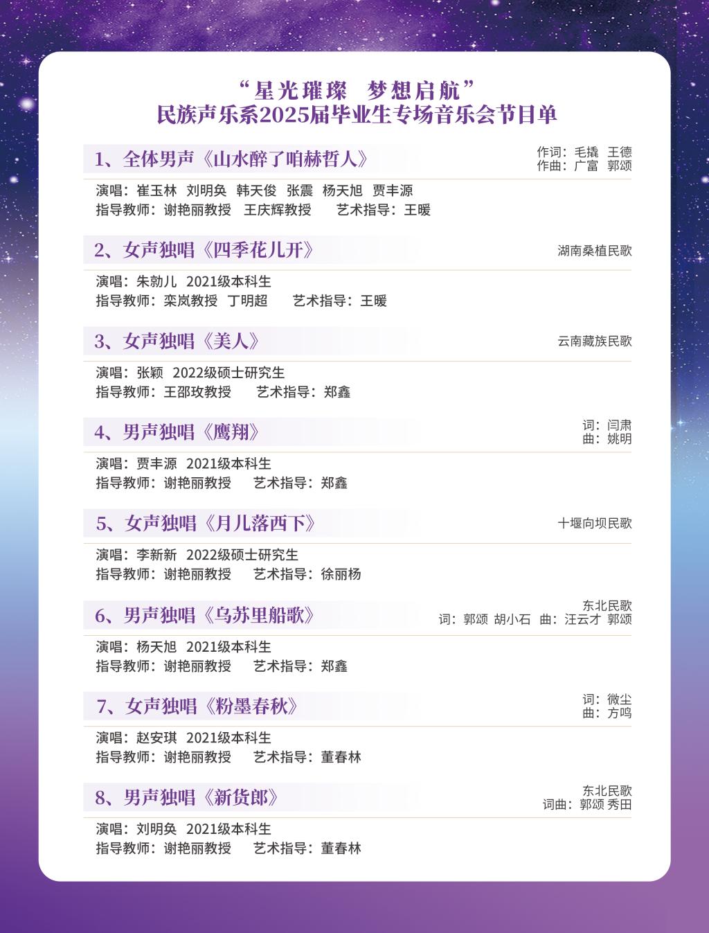作为永利23411集团2025春季演出季系列活动之一,“星光璀璨 梦想启航”民族声乐系2025届毕业生专场音乐会,将于5月9日(星期五)18:00在永利23411集团音乐厅举行。