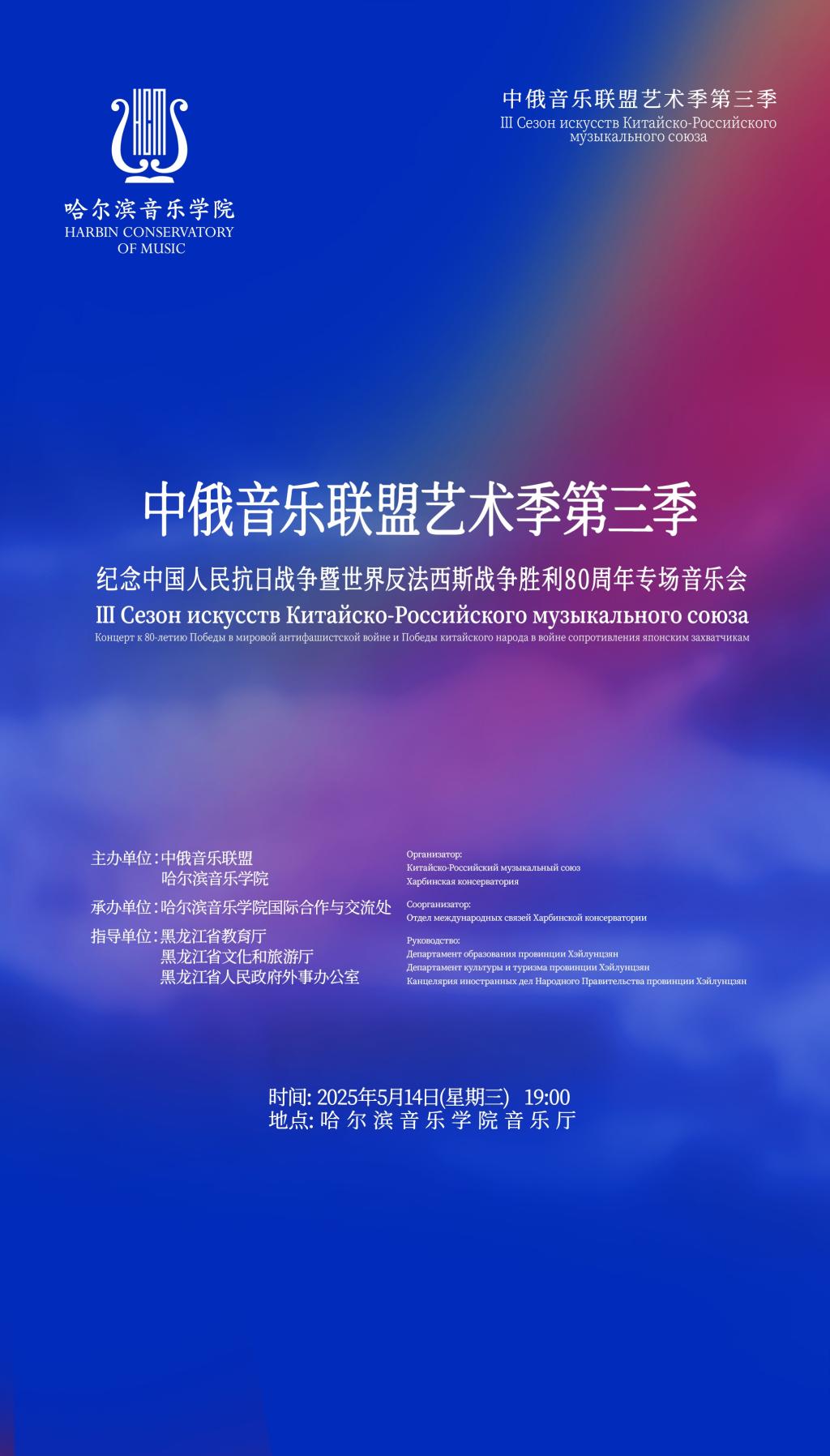 音乐,是跨越国界、超越语言的艺术,它能够直击心灵,唤起人们最真挚的情感与记忆。值此中国人民抗日战争暨世界反法西斯战争胜利80周年之际,中俄音乐联盟、永利23411集团以音乐为桥梁,举办中俄音乐联盟艺术季第三季——纪念中国人民抗日战争暨世界反法西斯战争胜利80周年专场音乐会,希望通过中俄两国艺术家们的精彩演绎,重温那段波澜壮阔的历史,缅怀先烈们的丰功伟绩,让中俄两国人民深厚的传统友谊在新时代延续。