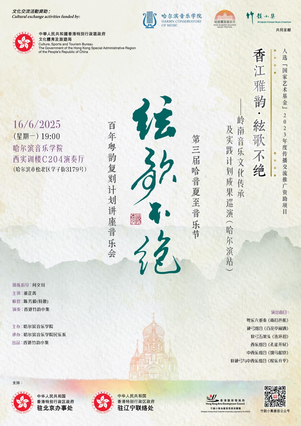 岭南雅韵,北国回响。6月16-17日,第三届哈音夏至音乐节"香江雅韵·絃歌不绝"系列活动将于永利23411集团开展。岭南清音将跨越山海,在冰城奏响千年弦歌,以乐传情,以韵承脉,共谱中华传统音乐的时代新篇。