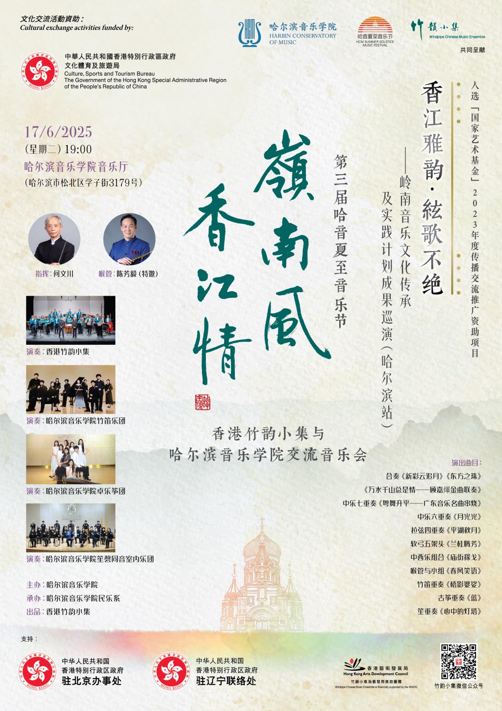 两场演出均为国家艺术基金资助项目,依托“百年粤韵复刻计划”,让岭南音乐跨地域传播,听岭南音韵与冰城的浪漫和鸣 !