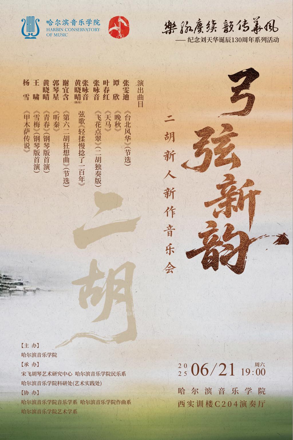 “弓弦新韵——二胡新人新作音乐会”,云集了来自全国专业院校和乐团的优秀青年演奏家杨雪、郭琴星、张咏音、黄晓晴、王啸等将演绎近几年来优秀创作作品。