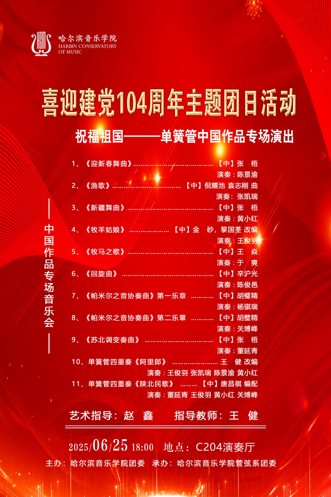 喜迎建党104周年主题团日活动 | 祝福祖国——单簧管中国作品专场演出