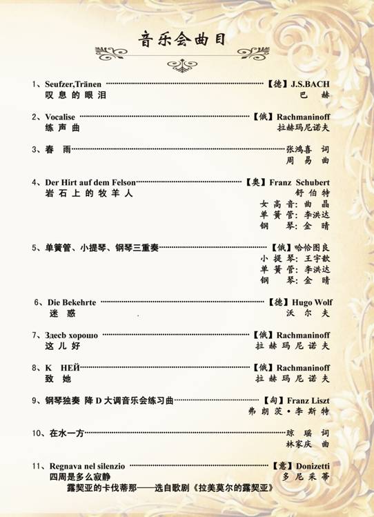 近年来,她多次举办个人独唱音乐会。2010年5月在上海音乐学院举办硕士学位个人独唱音乐会;2011年4月在上海音乐学院举办硕士学位毕业独唱音乐会;2011年11月在黑龙江艺术职业学院举办第三场个人独唱音乐会。