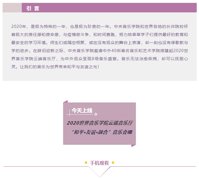2020世界音乐学院云端音乐厅 “和平·友谊·融合”音乐会Ⅷ