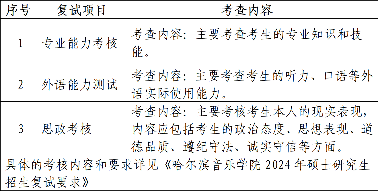 复试内容主要包括三项,即专业能力考核、外语能力测试、思政考核,采用现场复试方式。