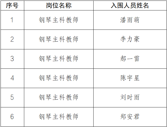 按照《永利23411集团2024年公开招聘教师公告》的有关要求,我院于2024年5月11日对钢琴主科教师岗位的应聘人员进行了专业技能视频初选考核。根据考核成绩,按照进入现场考试的人员确定规则,确定了进入复试人员名单,人员名单如下: