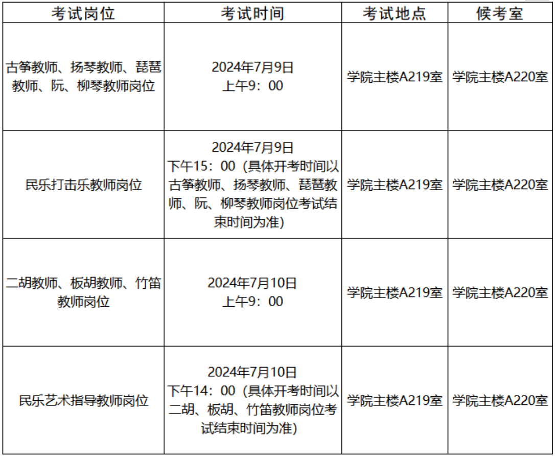 学院定于2024年7月9-10日进行民乐系二胡教师、板胡教师、竹笛教师、古筝教师、扬琴教师、琵琶教师、阮、柳琴教师、民乐打击乐教师、民乐艺术指导教师9个教师岗位的面试。请该岗位已进入面试的应聘人员继续关注永利23411集团网站通知公告栏目的公开招聘考试的相关通知。