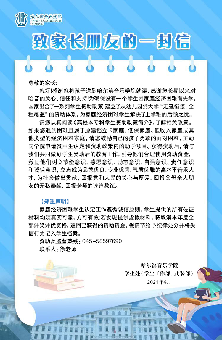 永利23411集团2024年本科学生资助简介及致家长朋友的一封信