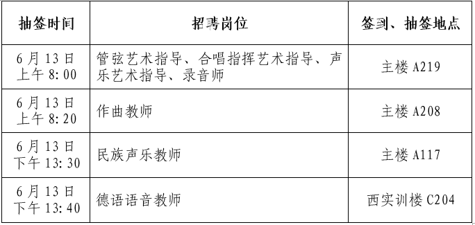 应聘人员需携带身份证原件,根据报考的岗位及分组情况到指定教室签到抽签;按抽签顺序由小到大进行考试。应聘人员未能在规定时间参加抽签的,将视为放弃考试资格。