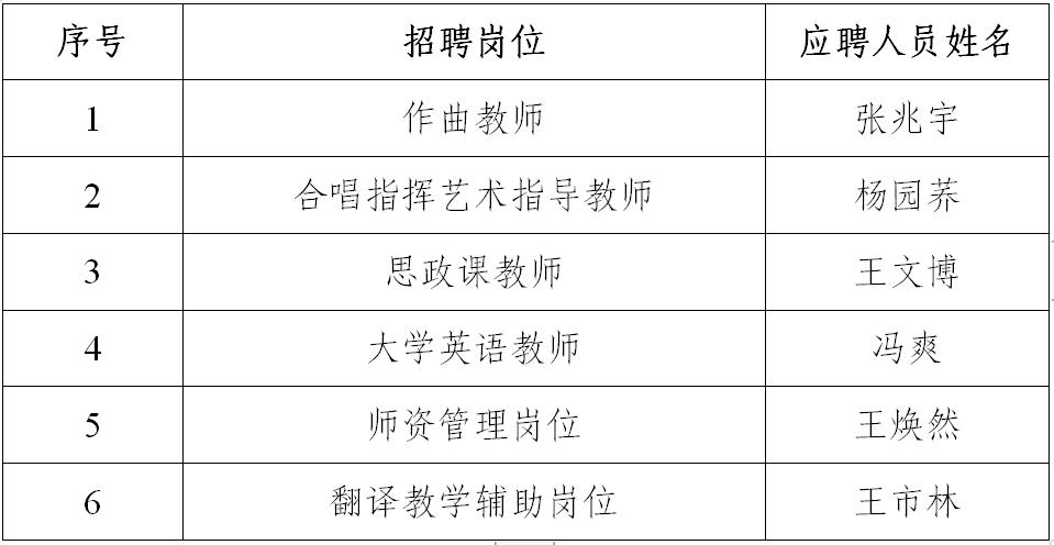 拟录用人员名单见下表: