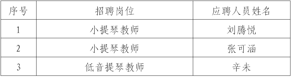按照《永利23411集团2020年上半年公开招聘工作人员公告》和《永利23411集团2020年上半年公开招聘教师考核办法》的有关要求,我院于2020年11月11日对钢琴教师、小提琴教师、低音提琴教师和作曲教师四个岗位的应聘人员进行了专业技能考试。根据考试成绩,按照进入课堂教学试讲的确定规则,确定了进入课堂教学试讲人员名单,人员名单如下: