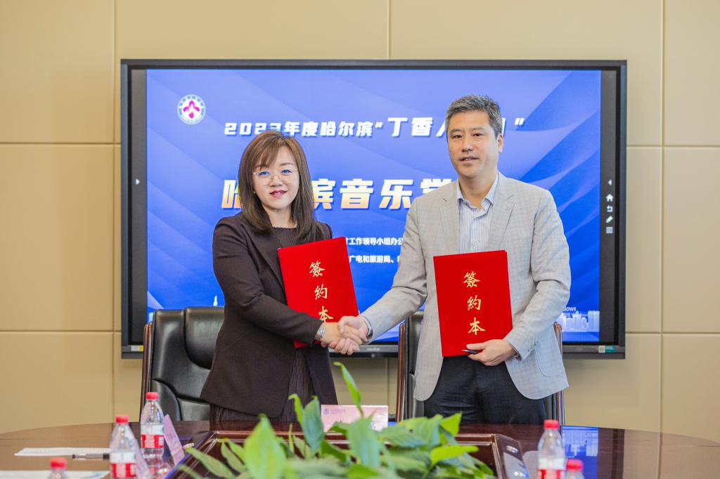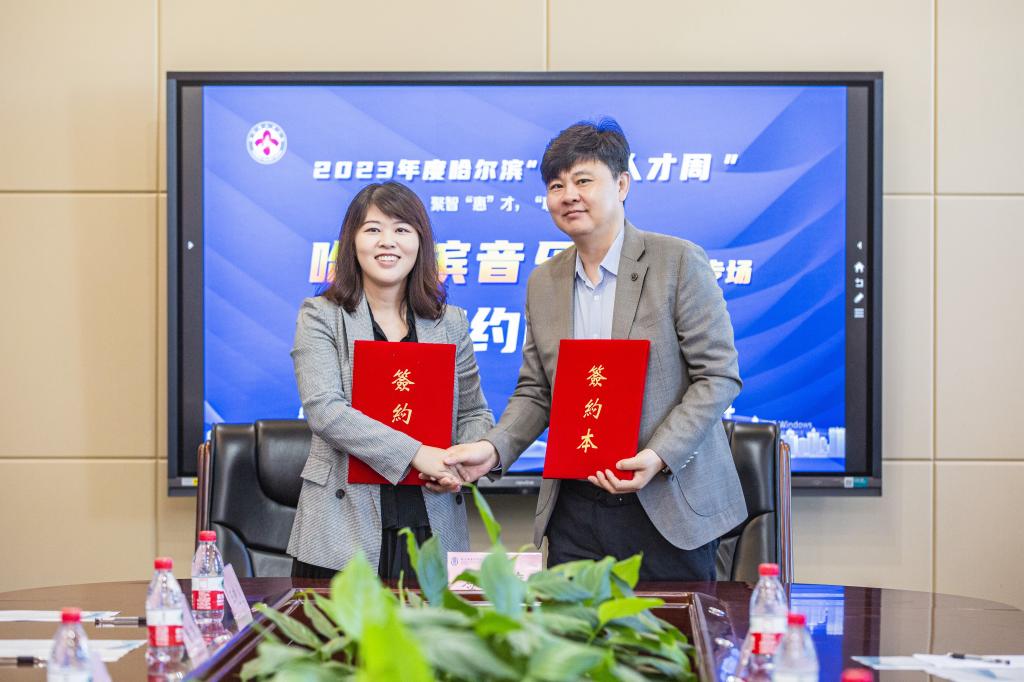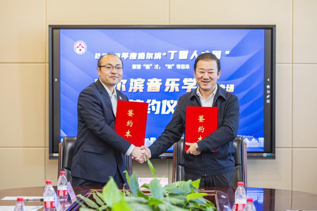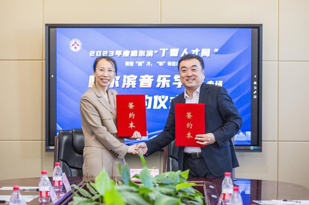 随后,学生处(学生工作部、武装部)处(部)长曲娜与黄大伟签订文化建设交流合作协议;声歌民声联合党总支书记杨琳擘与市工人文化宫主任余涛签订实习实训基地合作协议;音乐学系党总支书记王晓亮与市群众艺术馆馆长栾永欣签订非遗进校园合作协议;管弦系党总支书记杨玲与哈尔滨音乐厅(哈尔滨交响乐团)副团长张景峰签订文化建设交流合作协议;民乐钢琴联合党总支书记张冰与哈尔滨芭蕾舞团党委书记王晓峰签订文化建设交流合作协议。
