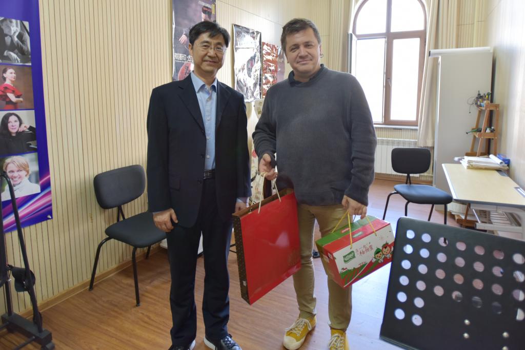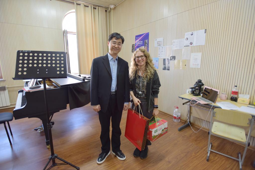 走访中,杨燕迪与俄籍教师进行亲切交流,感谢俄籍教师不远万里、跨越国界在哈音的辛勤耕耘和默默付出,以及对哈音对俄合作办学所作出的孜孜不倦的贡献。