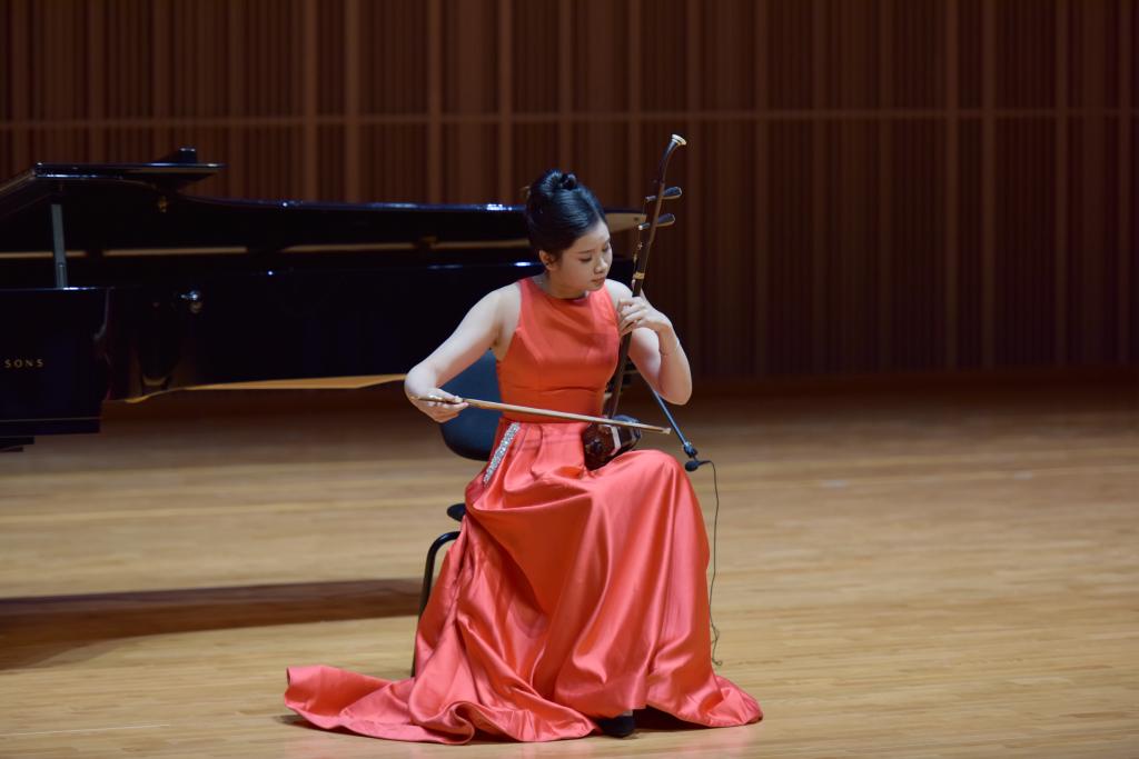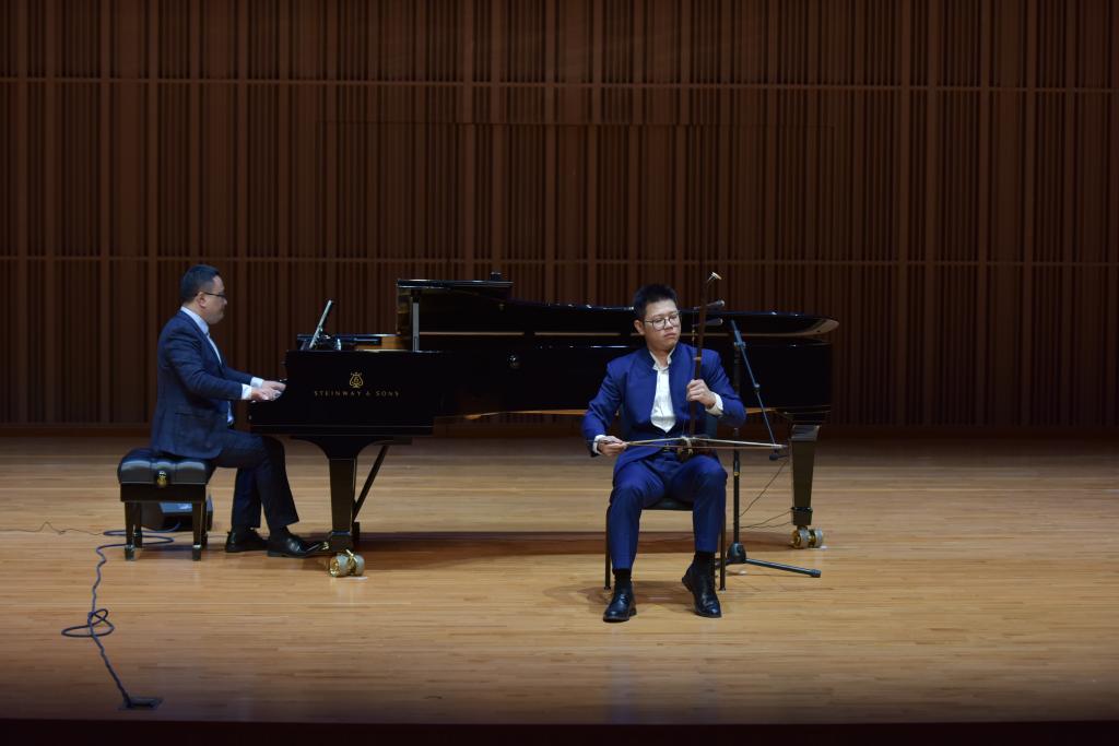 在显露国粹韵味的《粉墨春秋》中,音乐会拉开帷幕。上海音乐学院的师生演唱《一根丝线牵过河》《幽兰操》《忆秦娥·恒山月》等曲目,以优美的曲调讲述民间故事,唱出人生感叹;二胡独奏《江南意象》为现场听众描绘出悠哉快活、如诗如画的江南意象;小提琴独奏曲《卡门》利用小提琴“女高音”特色的音色与各种花式技巧生动形象地演绎了卡门的形象,富有艺术张力,脍炙人口;音乐会以二胡独奏曲《阳光·大地》完美落幕,奏出了中华儿女心中的爱国热情和豪迈胸怀。