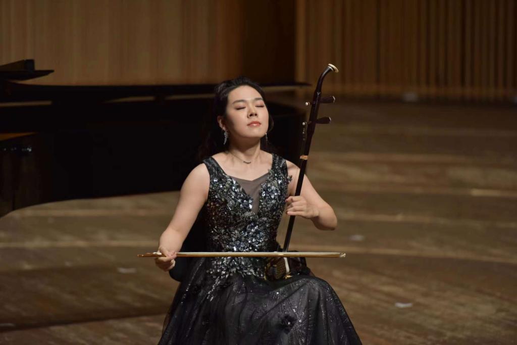 整场演出在永利23411集团青年教师谢宜含演奏的的二胡独奏《第五二胡狂想曲》中落下帷幕,这首乐曲采用了内蒙古民歌风格为基调,用饱蘸深情的笔墨,动人心弦的音韵及优美而舒展的长调,热情地讴歌了祖国大地的壮丽景色,抒发了作者对祖国的无限赞美之情。