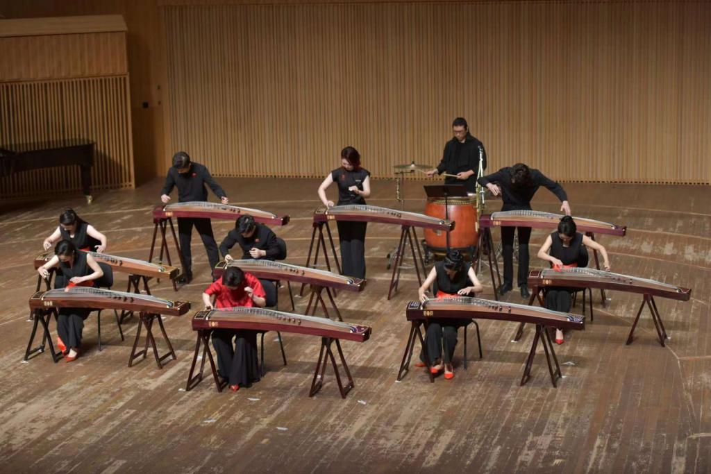 中国音乐学院溯筝团演奏的群筝与打击乐《麻辣九宫格》以四川汉族民歌的普遍规律为基底,突出与川渝火锅同源于本土码头文化的川江号子,充分展现了群筝的独特音乐魅力。