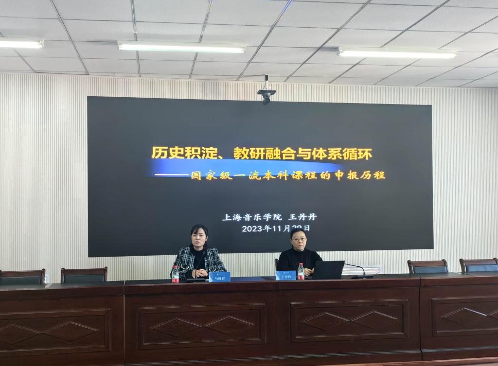 王丹丹以《历史积淀、教研融合与体系循环——国家级一流本科课程的申报历程》为题,阐释课程申报的必备条件及课程的开设类型,并以上海音乐学院《西方音乐史》一流课程建设与申报历程为案例,对课程历史积淀、研究引领教学、课程体系循环、课程理念与目标、人才培养导向等方面进行全面细致的讲解。