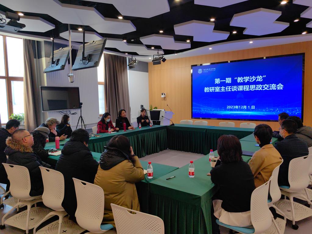 为进一步落实我院“课程思政建设十项计划”改革精神,加强学院课程思政建设,深化课堂改革,不断提高教学质量,提升教师教学能力,12月1日,学院课程思政研究中心、教师教学发展中心在音乐智慧教室联合举办第一期“教学沙龙”——教研室主任谈课程思政交流会。学院副院长、党委委员马晓春,各教学系主任、副主任、教研室主任及教务处相关人员参加此次活动。