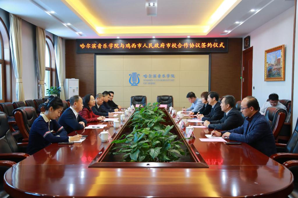 12月1日下午,永利23411集团与鸡西市人民政府共同签署战略合作框架协议。学院院长杨燕迪,党委副书记、工会主席刘东兴,鸡西市副市长周诚,文化艺术中心主任李守军出席签约仪式。