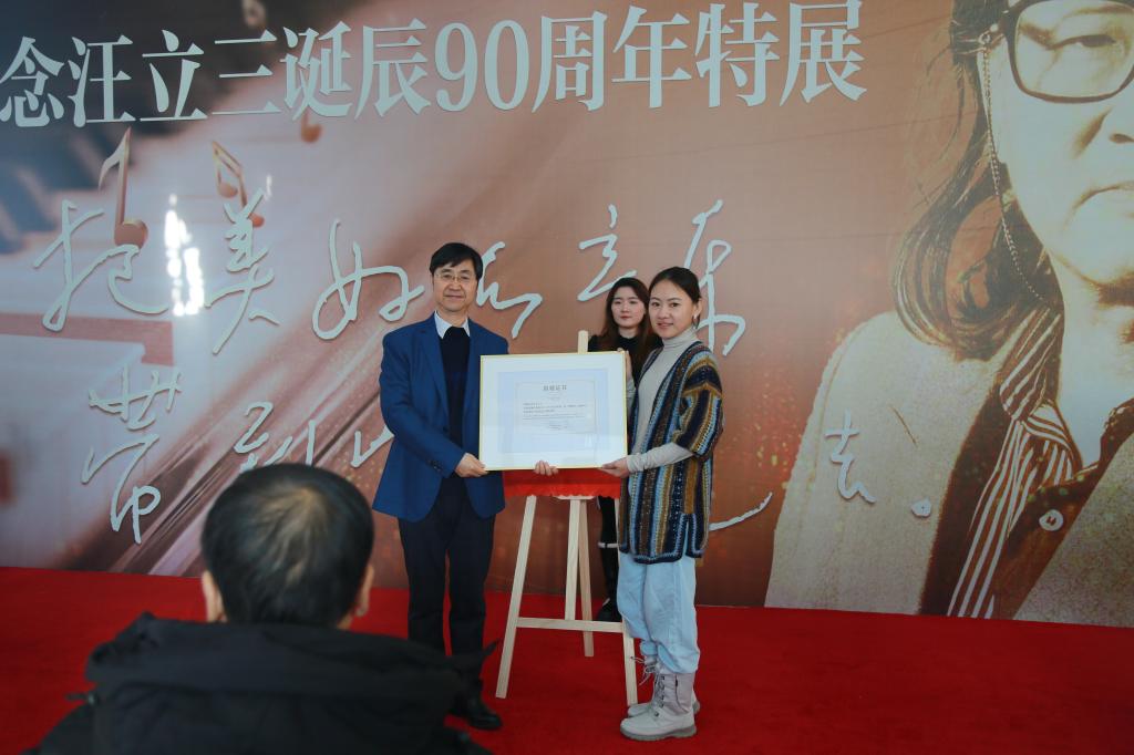 仪式上,叶小钢、杨燕迪、汪多文女士共同为“把美好的音乐带到北大荒去”——纪念汪立三诞辰90周年特展揭牌。杨燕迪向汪多文女士颁发捐赠证书。