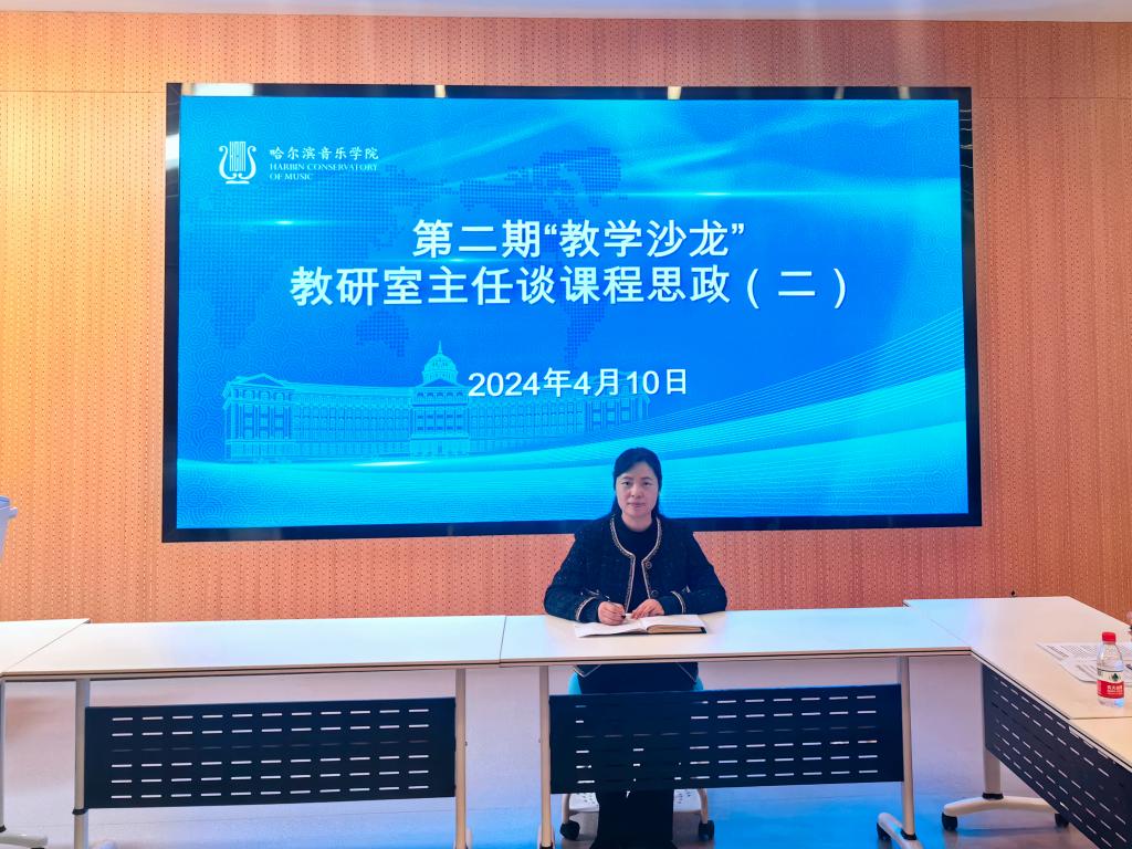 钢琴系第二教研室主任杨欣教授以“钢琴基础课课程思政的探索与实践”为主题,从课程思政的理论研习、小组学习、小组讨论汇报和舞台实践等方面,介绍了如何依托“黑龙江省高等学校课程思政示范课程和教学团队培养项目”,加深理解、拓宽思路、激发创新思维,提高教师对课程思政的认识和理解,把课程思政巧妙的融入到教学设计过程中,将价值引领贯穿于课程知识传播和能力培养,帮助学生塑造正确的世界观、人生观、价值观,不断提高学生的专业表演、团队协作及创新发展能力。