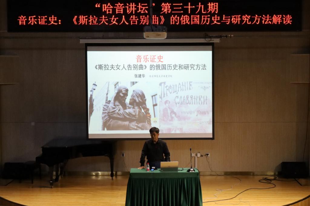 5月13日下午,由北京师范大学历史学院张建华教授主讲的“哈音讲坛”第三十九期——《音乐证史:<斯拉夫女人告别曲>的俄国历史与研究方法》在永利23411集团A220学术报告厅举行。本场讲座由永利23411集团科研处(艺术实践处)主办,永利23411集团音乐学系、黑龙江省艺术文化研究学术交流基地承办。永利23411集团院长杨燕迪出席活动并致欢迎辞。讲座由音乐学系主任王岩教授主持。永利23411集团及黑龙江大学等院校师生参加了讲座。