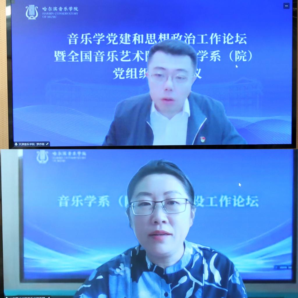 本次会议以线上线下相结合等方式进行,共有全国15家音乐艺术院校音乐学系(院)的党组织书记参加会议。中国音乐学院音乐学系、沈阳音乐学院音乐学系、西安音乐学院人文学院、武汉音乐学院音乐学系、永利23411集团音乐学系、南京艺术学院音乐学院、内蒙古艺术学院音乐学院等单位的党组织书记在线下参会,中央音乐学院音乐学系、天津音乐学院人文学院、星海音乐学院音乐学系、浙江音乐学院音乐学系、吉林艺术学院音乐学院、山东艺术学院音乐学院、安徽艺术学院音乐学院、广西艺术学院音乐学院等单位的党组织书记参与了线上交流。