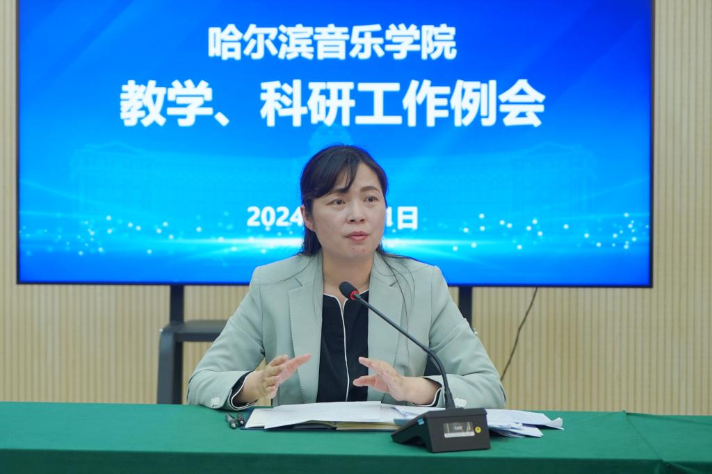 会上,教务处副处长林岩对教学公开课、教研室讨论、毕业生音乐会及上学期考核材料等期中教学检查情况做了总结,对《永利23411集团优秀教材资助立项管理办法(试行)》《永利23411集团本科实习管理规定(试行)》《永利23411集团本科实习经费使用管理办法(试行)》3个新出台文件进行解读,并对近期即将开展的2024年艺术实践与劳动教育周、第五届田径运动会、本科教学材料档案归档、2024届本科生学位授予、报送拟新增学士学位授予专业建设情况核查材料及第五届黑龙江省艺术类高校教学成果展等工作作了布置。