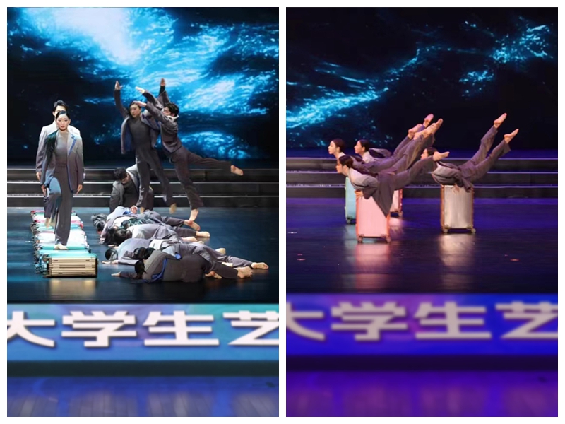 为期5天的大学生艺术展演活动,学院舞蹈《一直游到海水变蓝》先后参加舞蹈第三场展演、闭幕式演出。《一直游到海水变蓝》是我院舞蹈表演专业原创剧目作品,参演师生用深厚的情感和婀娜的舞姿诠释了新时代大学生朝气蓬勃的青春风采与积极昂扬的精神风貌,展现了学院美育教育成果。