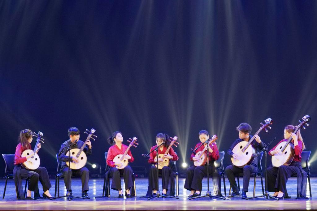 演出现场,学院民乐系学生带来的乐器演奏《中俄名曲联奏》赢得了观众的阵阵掌声。节目用中国传统乐器演奏《莫斯科郊外的晚上》《讯》等多首俄罗斯经典曲目,中西结合的形式不仅体现出中华文化的博大精深,也展现了哈音青年的热情和活力。