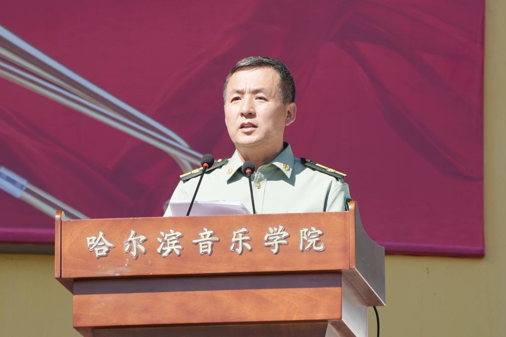 刘东兴代表全体师生作动员讲话。刘东兴代表学院向全体新生表示热烈欢迎,并强调了军训对于培养学生纪律性、团队精神及爱国情怀的重要意义。他指出,大学生参加军训是《中华人民共和国兵役法》赋予大学生的光荣义务,是强化全民国防观念的重要手段,是帮助同学们尽快适应大学生活的有效途径。他勉励同学们珍惜军训机会,勇于挑战自我,将军训中锤炼出的坚韧不拔、吃苦耐劳的精神带入到未来的学习生活中,成为德智体美劳全面发展的新时代音乐人才。