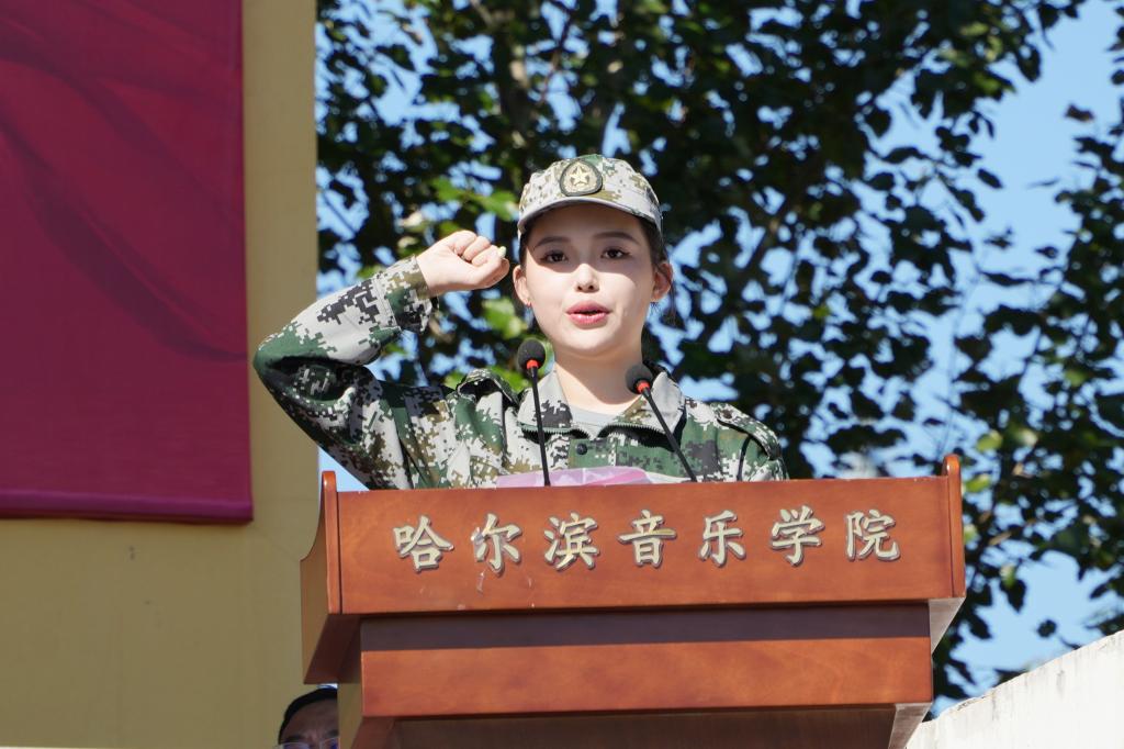 管弦系2024级本科生孙已媞代表全体新生发言,她表达了对即将开始的军训生活的期待与决心,并承诺将严格尊重师长,严守纪律,锤炼意志,团结协作,与同学们携手共进,共同度过这段难忘的时光。