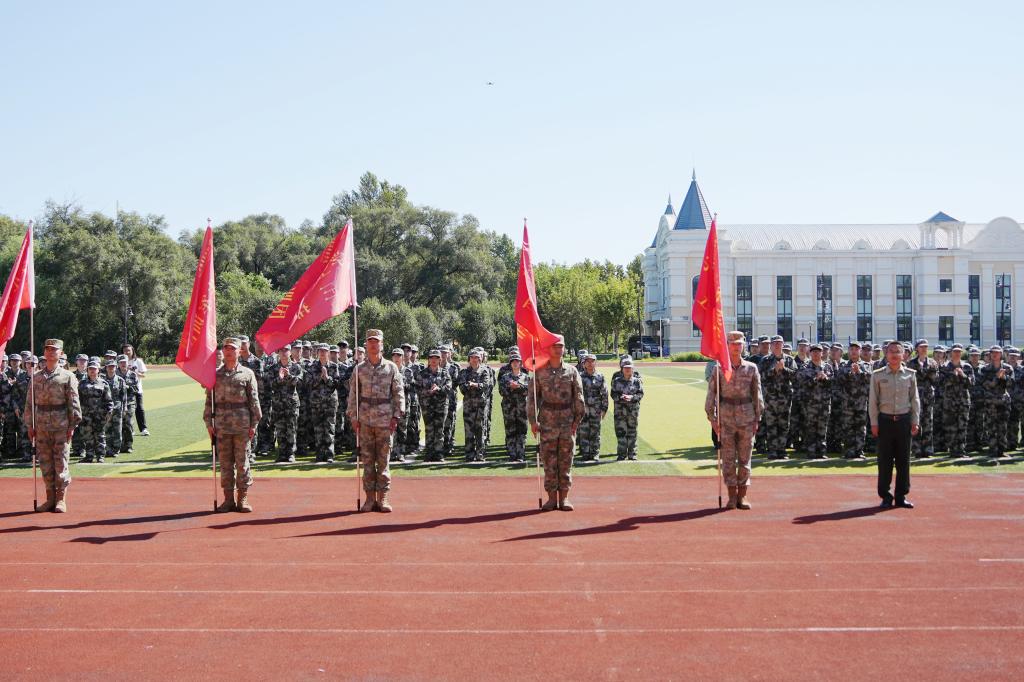 在庄严军乐声中,丁健向承训带队的五位教官授军旗,象征着军训任务的正式开启和责任的传递。这一刻,不仅是对军训团的信任与重托,更是对全体新生的一次深刻洗礼和激励。徐晓峰在总结中表示,希望新生们团结一致、密切合作,始终坚持保持不怕困难、勇往直前的昂扬斗志,严格要求、科学管理、精心组织、安全施训,高质量、高标准、圆满地完成本次军训任务。
