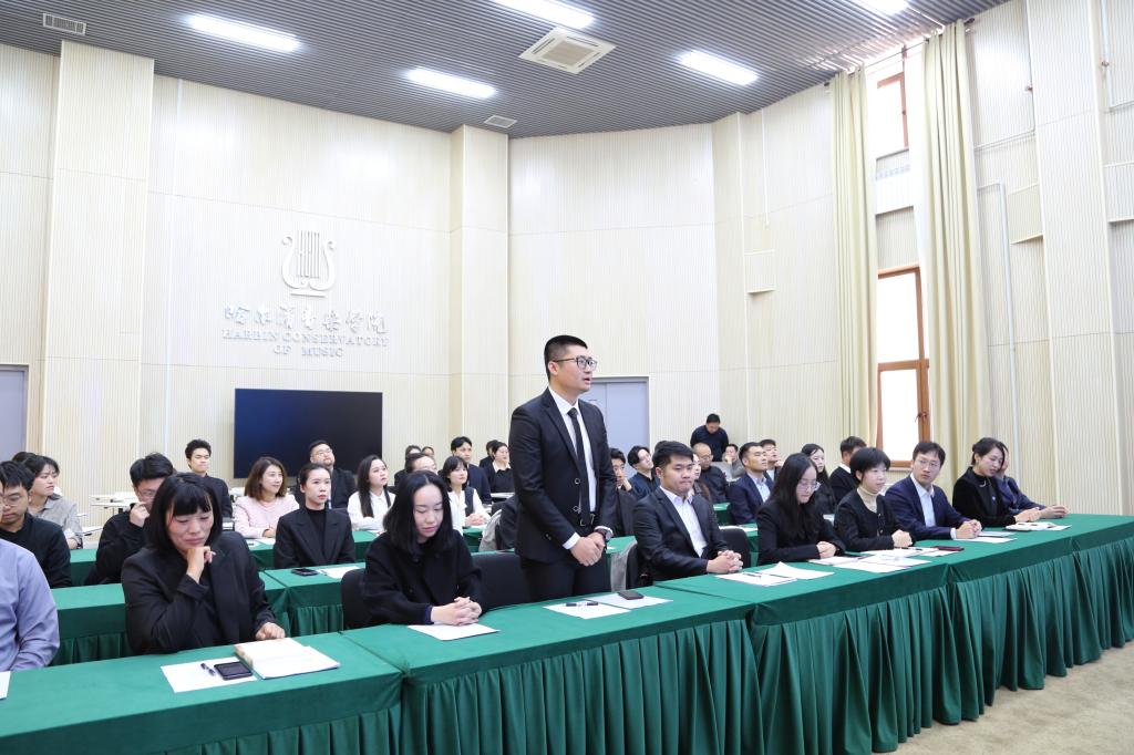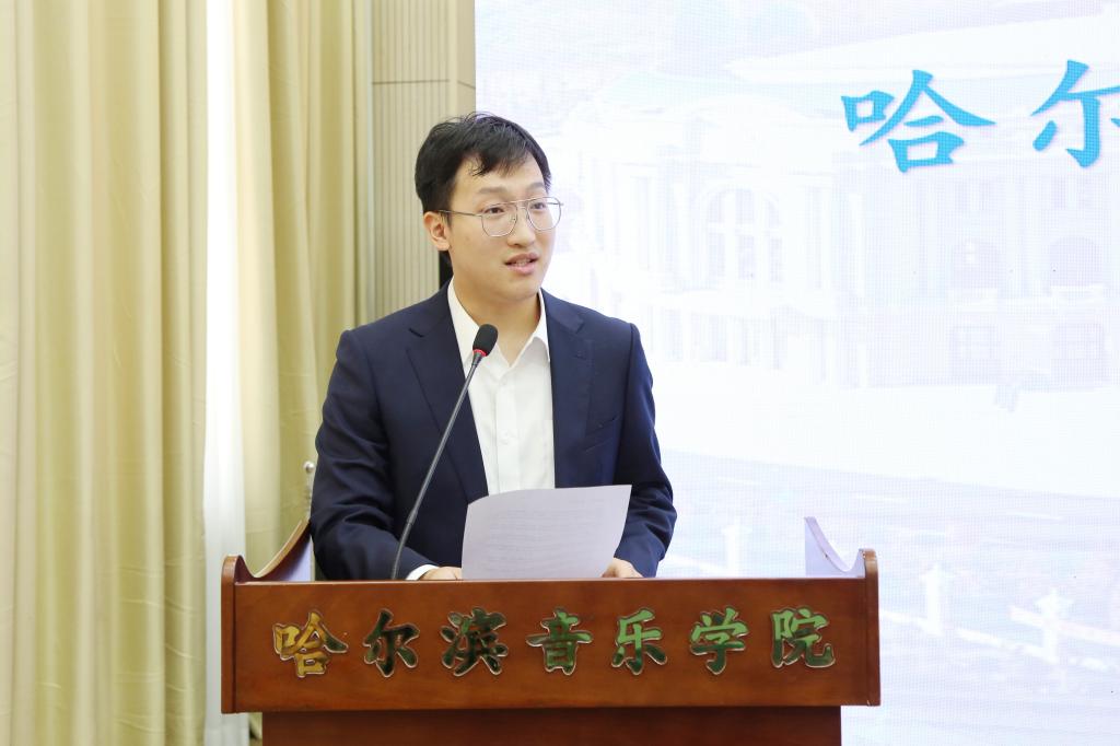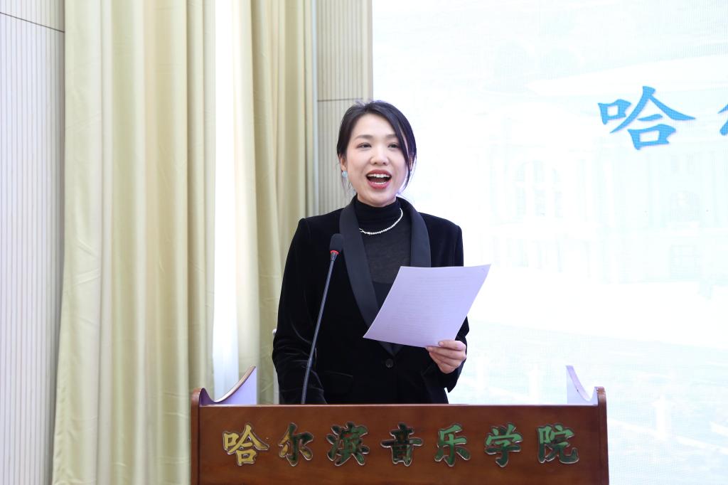 艺术学系青年教师王丽娜和管弦系青年教师曹皓淼作为新教师代表发言,表达了入职哈音大家庭的欣喜与激动,树立了“躬耕教坛、强国有我”的志向和抱负,坚定了将光荣与自豪的勋章镌刻在哈音未来的信心和决心。